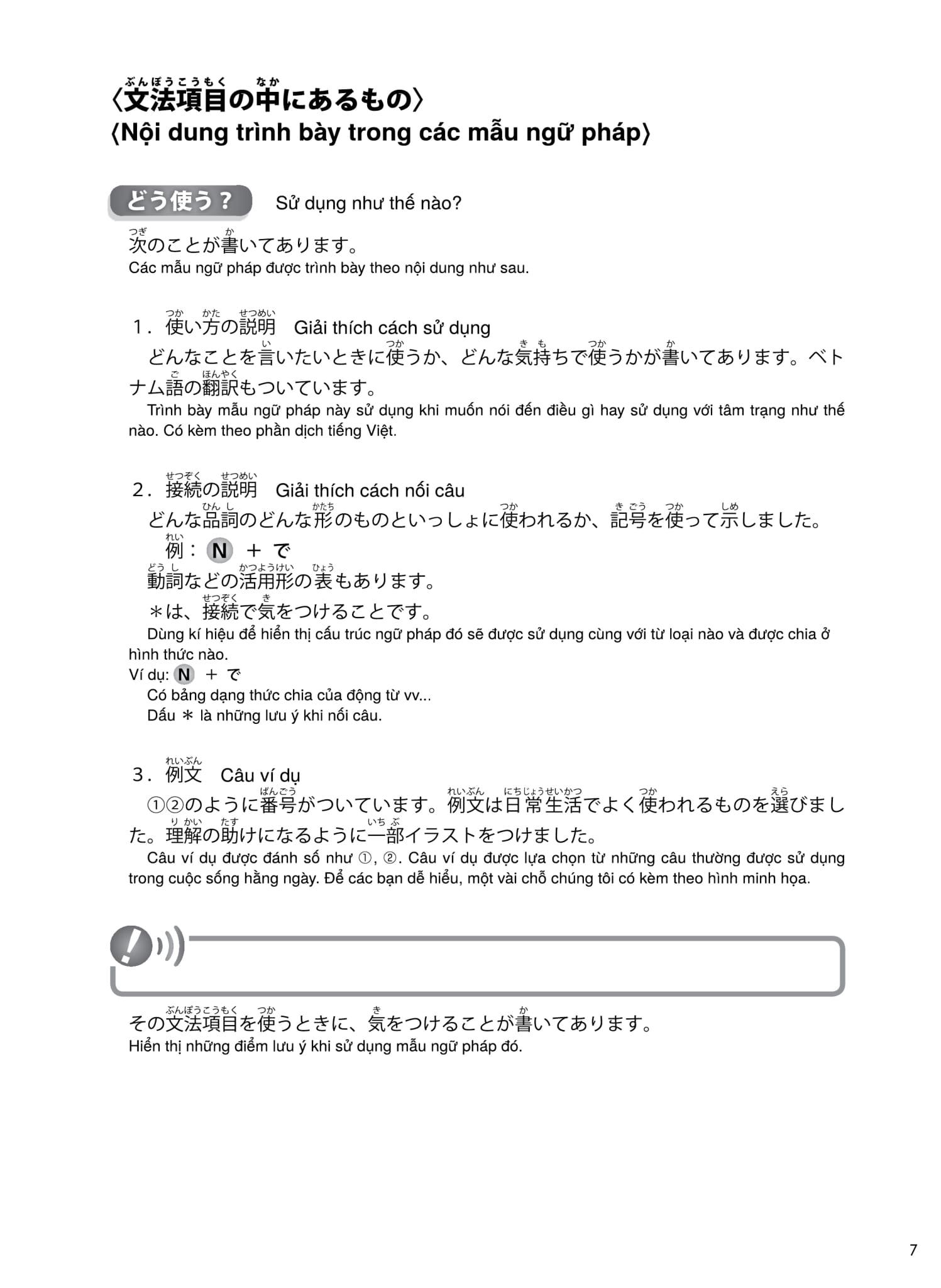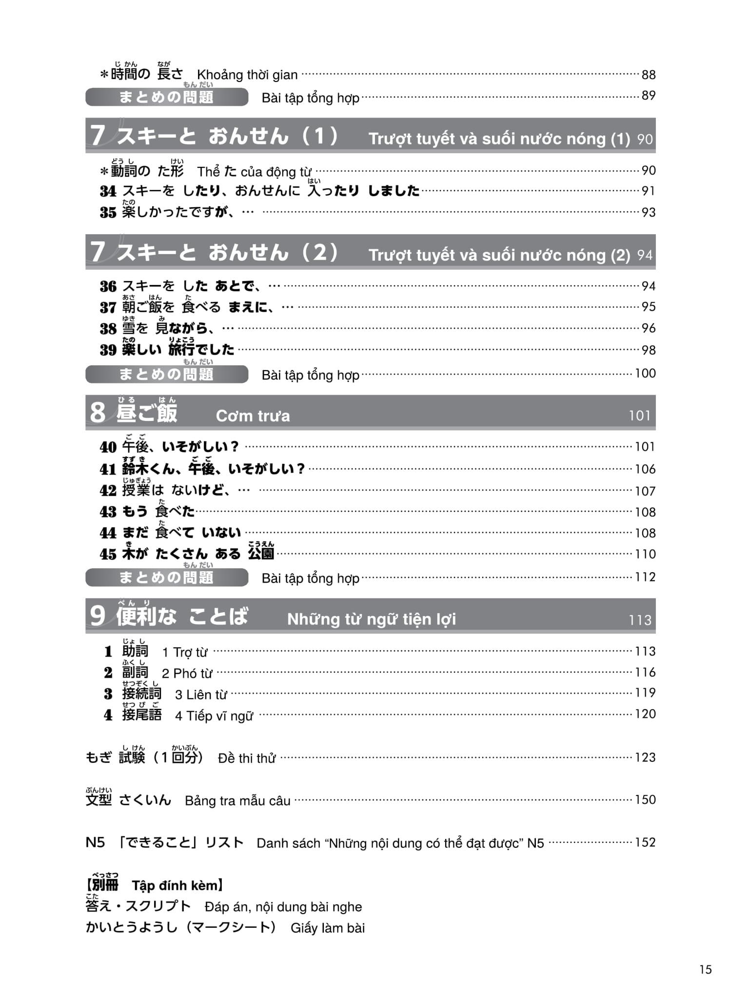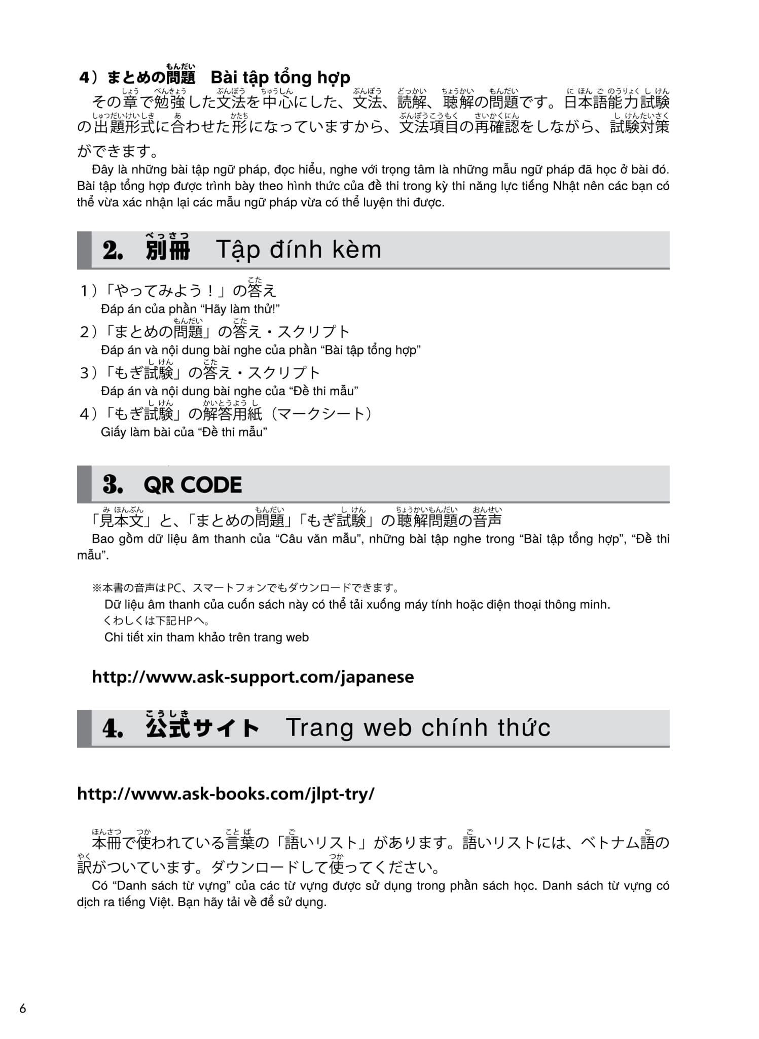 Bộ giáo trình này là tài liệu luyện thi thiết thực cho "Kỳ thi năng lực Nhật ngữ" các cấp độ từ N5 đến N1, giúp người học nắm chắc các điểm ngữ pháp và vận dụng chúng thông qua các bài luyện tập Nghe - Đọc.
