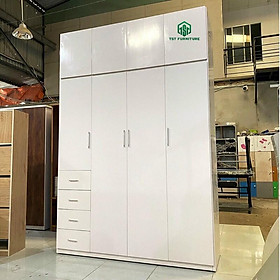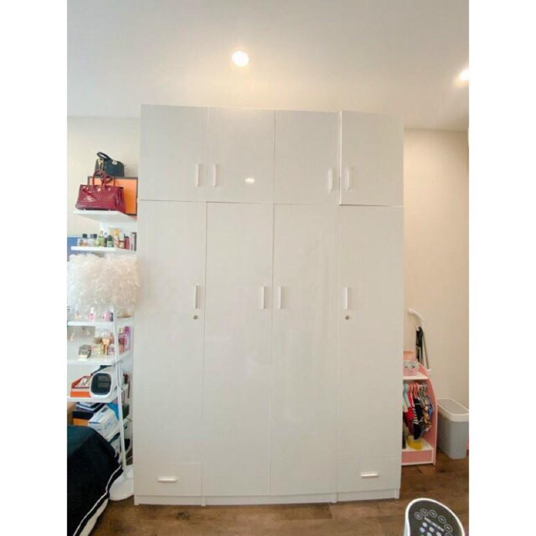 Mẫu tủ 4 cánh, 2 tầng cao tiện lợi treo và gấp quần áo