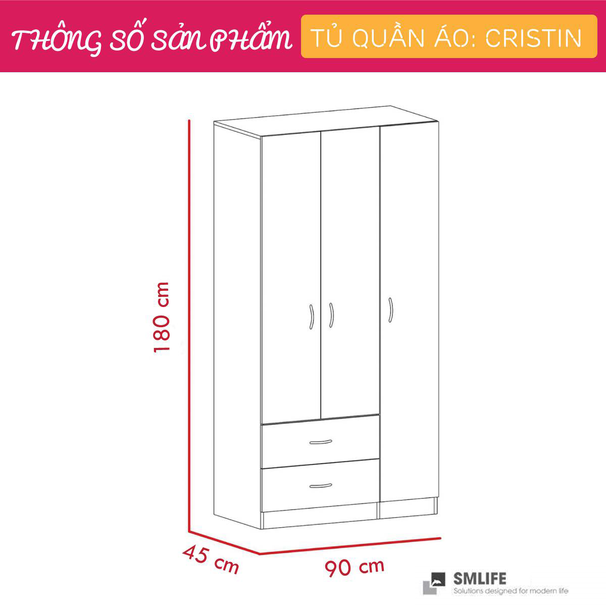 Mua tại TiktokTủ quần áo gỗ Cristin tiếp nối dòng sản phẩm nội thất NHANH – Fast Furniture với phong cách đơn giản sẽ là điểm nhấn nổi bật cho phòng ngủ của bạn. Sản phẩm phù hợp với nhiều phong cách nội thất từ hiện đại cho tới cổ điển, vintage. Tủ quần áo Cristin được thiết kế cân đối và cực kỳ chắc chắn mang đến nhiều không gian lưu trữ quần áo và đồ dùng. Sử dụng vật liệu ván ép công nghiệp MDF cốt xanh chống ẩm phủ Melamine cao cấp giúp tủ quần áo gỗ SMLIFE có độ bền cao, chống trầy, chống cong vênh và chống ẩm rất tốt. Bạn có thể tự lắp đặt sản phẩm dễ dàng với các phụ kiện và hướng dẫn đi kèm. SMLIFE có hàng trăm mẫu tủ quần áo với thiết kế mới lạ, độc đáo chắc chắn sẽ mang đến nhiều sự tiện ích cho phòng ngủ của bạn.