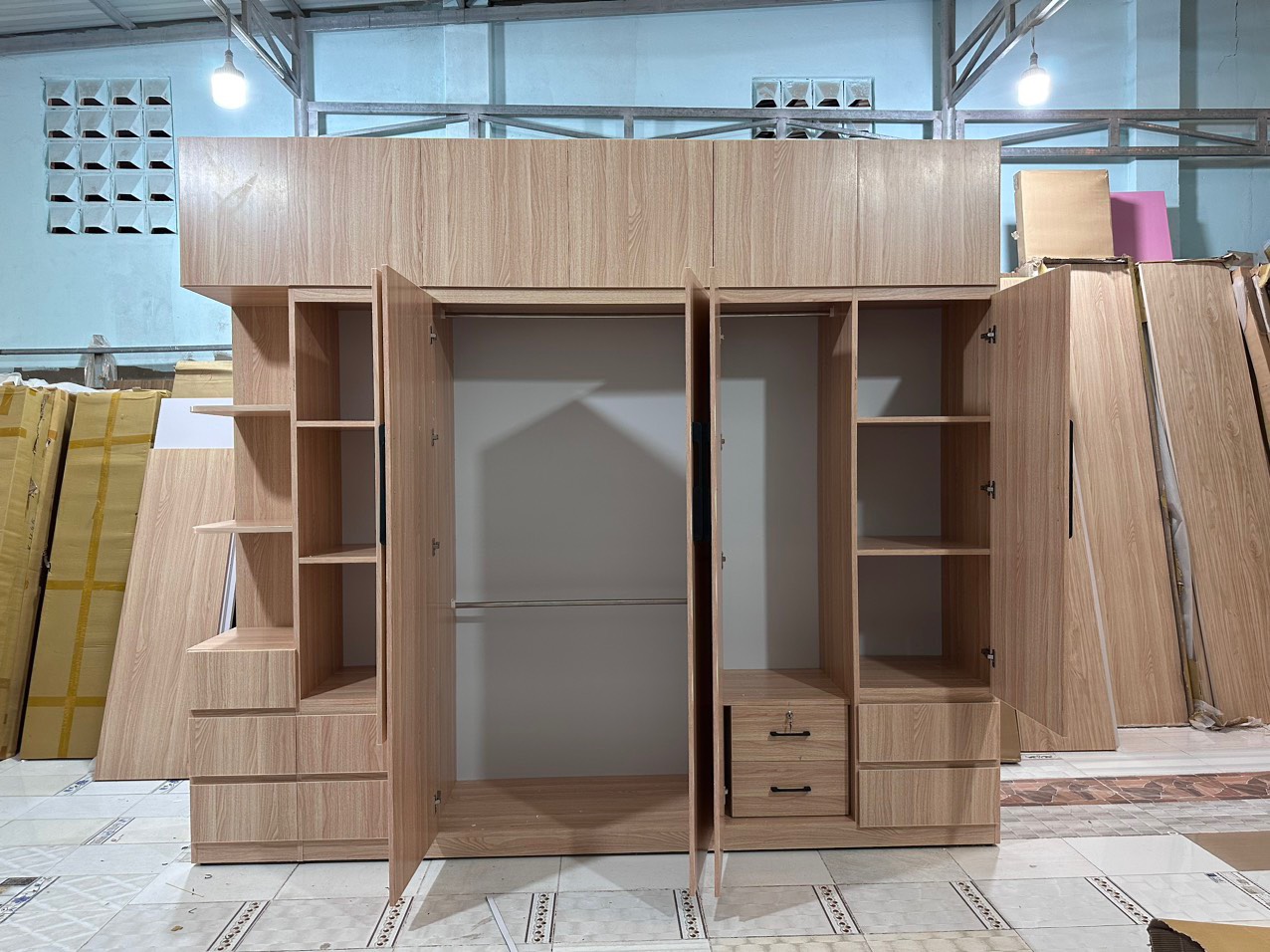 Tủ quần áo 4 cánh kệ trang trí 2m4x2m giá lại mềm anh chị tham khảo nha | Minh Khôi