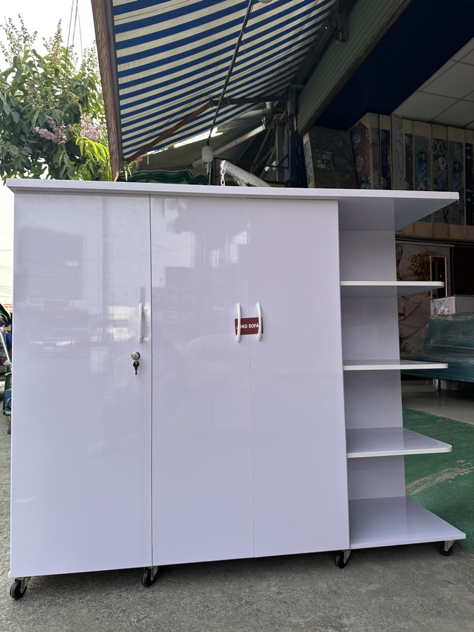 Ngoài việc xếp quần áo thì tủ kèm kệ có thể để những vật dụng cần thiết như túi sách, nước hay những vật dụng cá nhân khác điều rất tiện lợi.