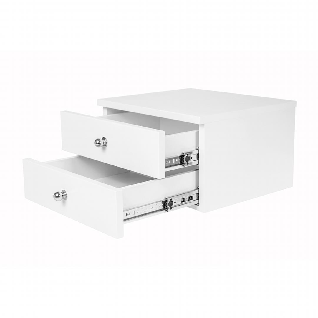 - Kệ tủ đầu giường hình vuông có hộc kéo - Chất liệu: ván gỗ HMR (viết tắt của High Moisture Resistence) lõi xanh chống ẩm, chống thấm nước phủ melamine, phun sơn trắng bóng