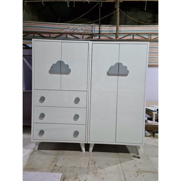 Tủ quần áo kết hợp kệ để đồ cho bé.