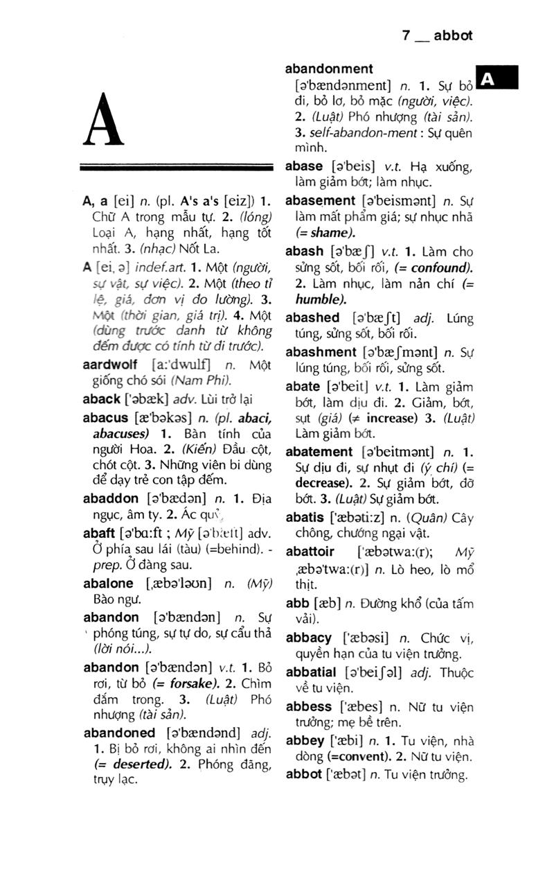 Nhằm đáp ứng nhu cầu học tiếng anh đa dạng của độc giả , chúng tôi đã biên soạn bộ từ điển Anh - Việt để phục vụ cho người học tiếng anh thuộc mọi