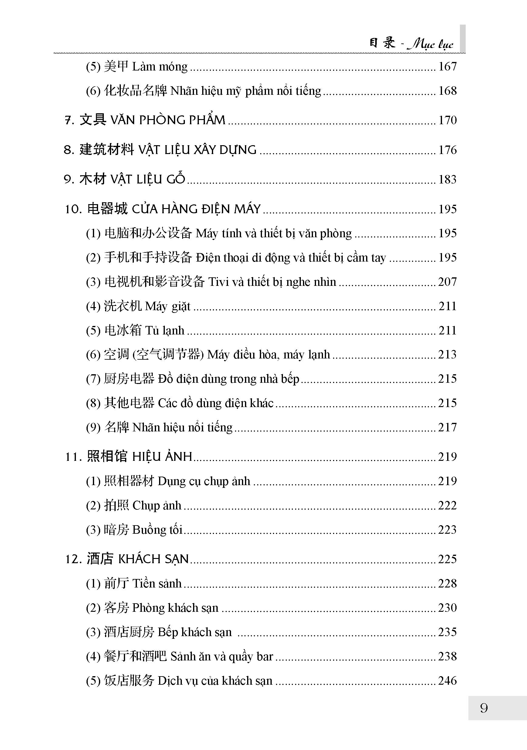 Lần tái bản này, cuốn từ điển đã được sửa chữa bổ sung nhiều về nội dung. Thứ nhất, chúng tôi đã rà soát sửa chữa những lỗi biên tập và in ấn còn sót lại ở lần xuất bản trước, đồng thời bổ sung thêm khá nhiều từ ngữ mới rất bổ ích ở các chủ đề (đặc biệt là các chủ đề Thực phẩm, Trang phục và phụ kiện, Cửa hàng điện máy). Thứ hai, chúng tôi đã gộp chung nhiều chủ điểm có liên quan với nhau thành một chủ điểm lớn (trong đó có phân chia thành những chủ điểm nhỏ) để cấu trúc cuốn sách được gọn gàng hơn. Thứ ba, chúng tôi đã đưa thêm một số chủ đề mới mà người sử dụng tiếng Hán ở Việt Nam thường gặp như các món ăn Việt Nam, vật liệu gỗ, điện thoại và máy tính… Nhận thấy đây là những chủ đề rất cần thiết trong khi hầu như không có tài liệu tham khảo, chúng tôi đã mạnh dạn biên soạn để bổ sung vào từ điển, rất mong có thể đáp ứng được phần nào nhu cầu của độc giả.
