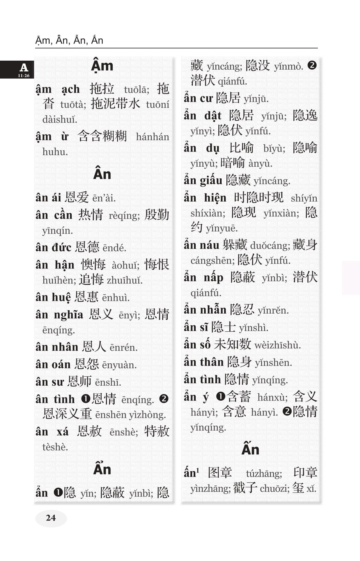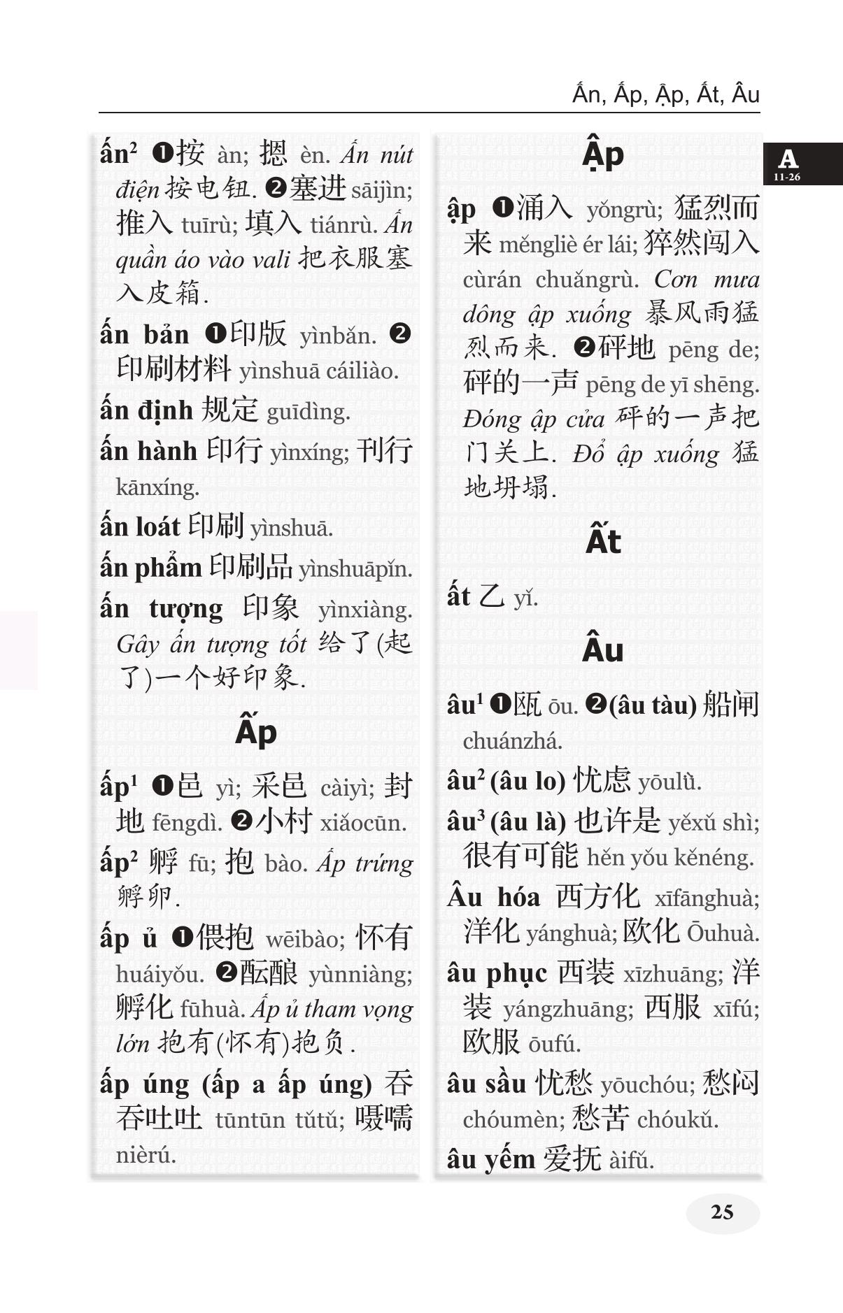 Khổ 10x16, bìa cứng, 1424 trang, in giấy trắng đẹp Nhằm đáp ứng nhu cầu tra cứu từ Việt sang Hán của người học tiếng Hán, nhất là để phục vụ cho đối tượng học