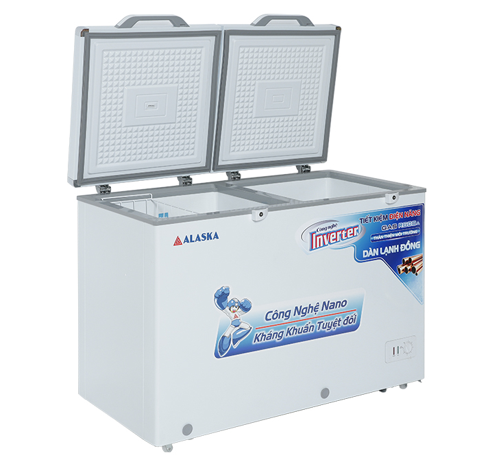 Thiết kế sang trọng, hiện đại: - Tủ Đông Alaska HB-550CI có tông mầu trắng sang trọng, thiết kế hiện đại với 2 nắp mở tiện lợi dễ sắp xếp phân loại sản phẩm. Công