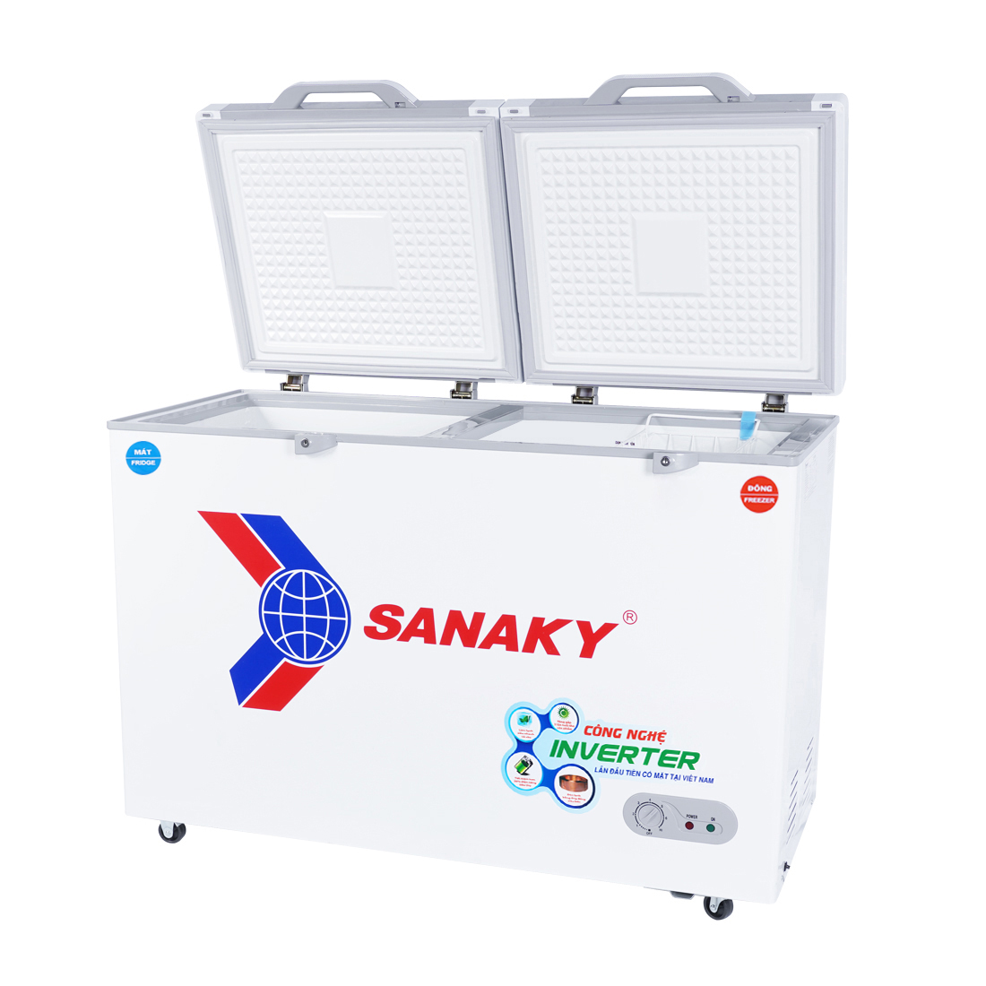 Tủ đông Inverter Sanaky VH-3699W3 dung tích 360 lít Tủ đông Inverter Sanaky VH-3699W3 thuộc dòng tủ 2 ngăn 2 cánh (gồm 1 ngăn đông và 1 ngăn mát), hay còn được gọi là tủ đông mát của thương hiệu Sanaky. Chiếc tủ