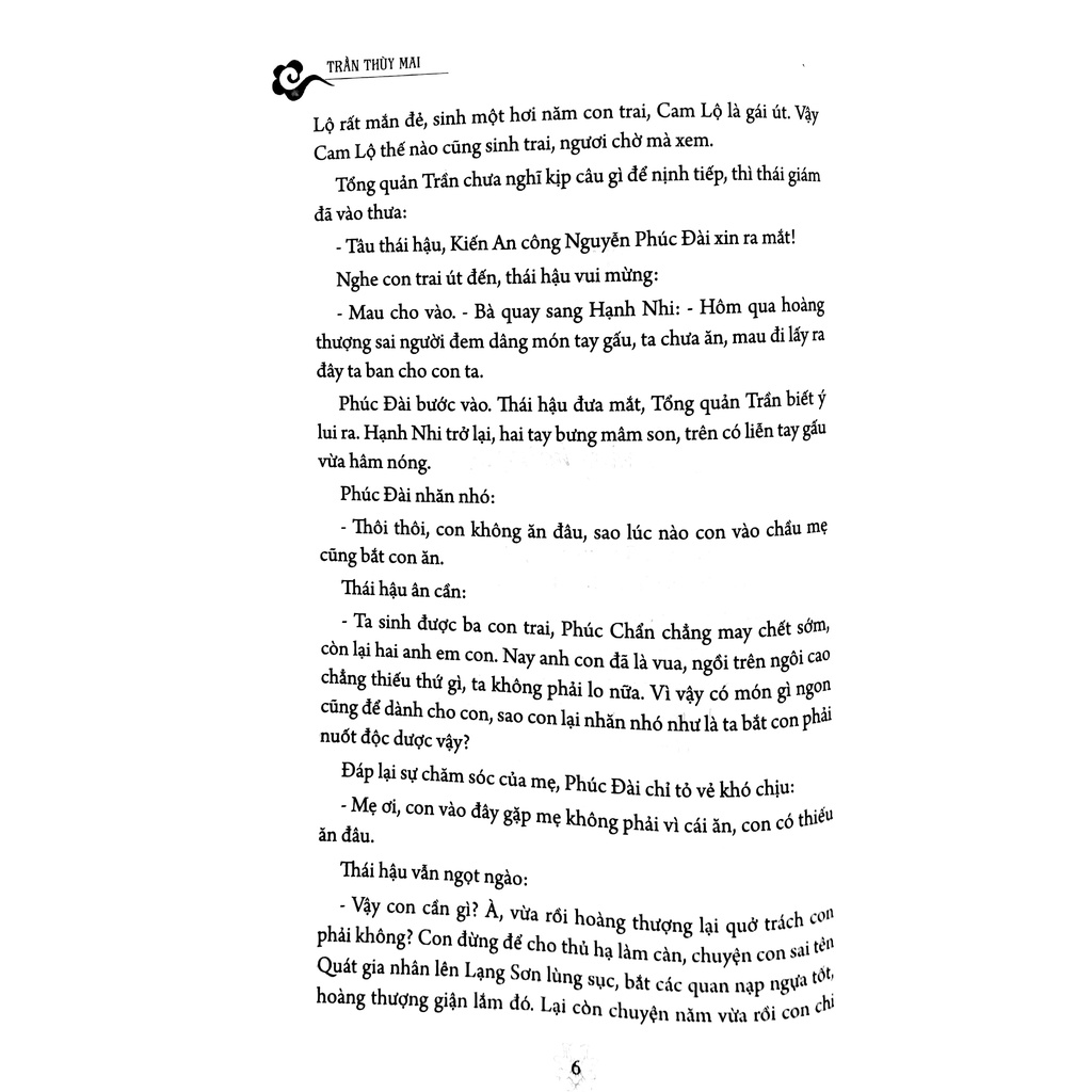 Ngoài trục chính với các nhân vật trung tâm kể trên, tác phẩm còn là xoay quanh các mối quan hệ quân thần, huynh đệ, những âm mưu thủ đoạn trong hoàng thất khi quyền lực luôn luôn bị nhòm ngó tranh giành. Nhẹ nhàng, tinh tế, không lên gân, tác giả lồng ghép mọi ý tưởng, suy nghĩ, lý giải của mình về chính trường nhà Nguyễn, từ thời Gia Long khởi lập đến lúc vua Tự Đức lên ngôi, bằng cách kể chuyện mạch lạc và cuốn hút, đầy sức thuyết phục. Những đại án thời nhà Nguyễn - vẫn còn gây tranh cãi sôi nổi trong hậu thế - được tái hiện sinh động và hấp dẫn, gay cấn: vụ án quật mồ đại công thần Lê Văn Duyệt do loạn Lê Văn Khôi; đại nghi án con hoàng tử Cảnh thông dâm với mẹ ruột; loạn Hồng Nhậm do vua Thiệu Trị phế trưởng lập thứ; nghi vấn nhức nhối vua Tự Đức có phải là con của đại thần Trương Đăng Quế và thái hậu Từ Dụ? Tác giả đưa ra những lý giải thuyết phục về các sự kiện lịch sử, thể hiện sự am hiểu sâu rộng cổ sử và tầm nhìn hợp tình hợp lý. Đồng thời, Trần Thùy Mai trổ hết tài khéo của một người viết nữ, tinh tế và miêu tả tâm lý nhân vật cực tài tình. Các nhân vật hấp dẫn và gây ấn tượng trong tiểu thuyết này có rất nhiều:
