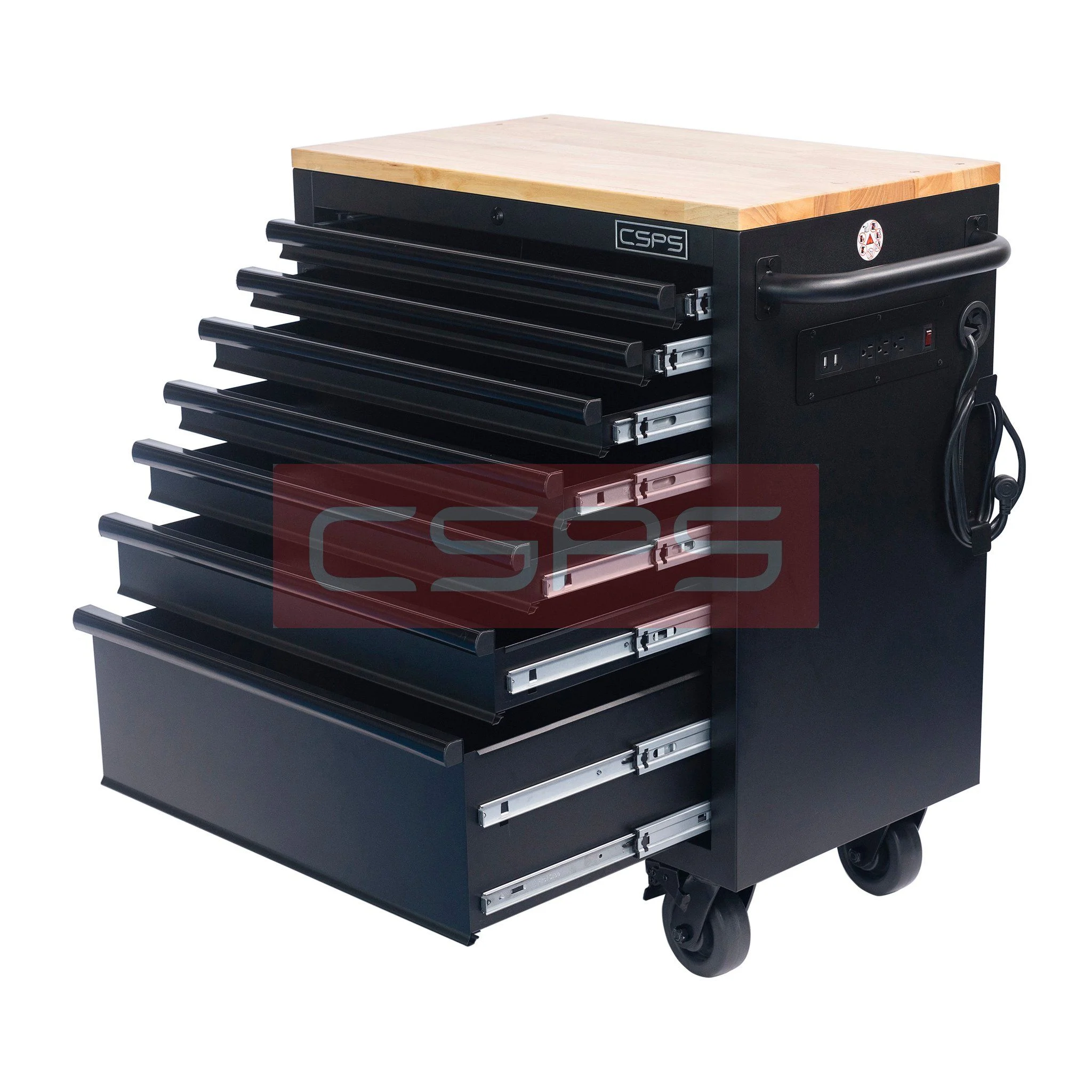 Mua tại TiktokTủ dụng cụ 7 ngăn kéo tay nắm đen có mặt ván gỗ kèm ray đóng êm CSPS