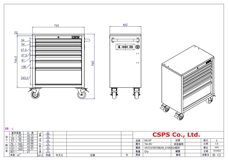 Tủ đồ nghề CSPS 13205 5 hộc kéo, Zalo 0934550918, #csps @NghiaPowerTools