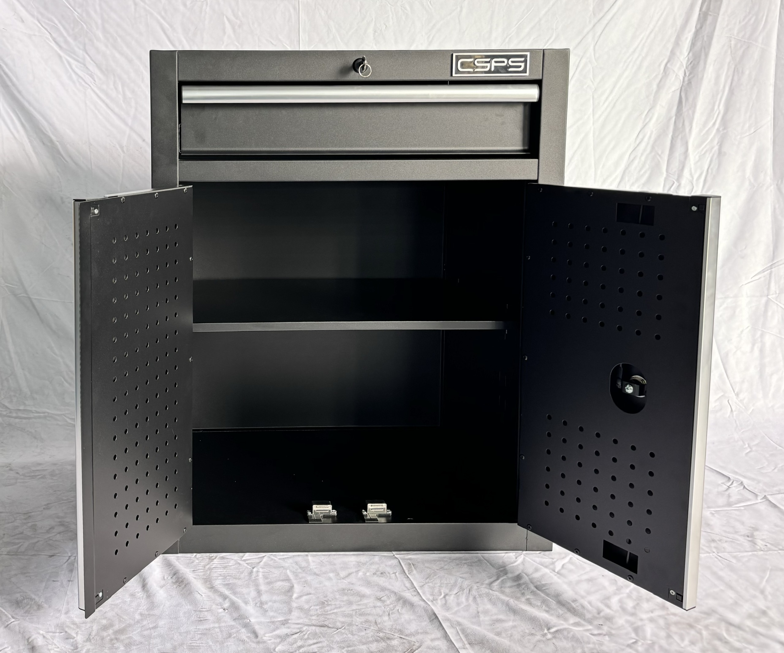 Tủ Dụng Cụ 61cm - 01 Hộc Kéo Màu Đen Kèm Bánh Xe, Ván Gỗ Vách Lưới (Tay Cầm Trắng) #CSPS #Fabina