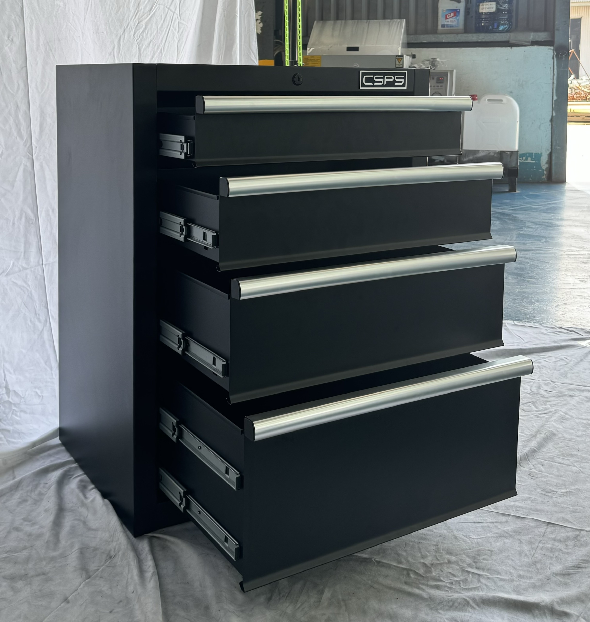 • Tủ dụng cụ CSPS 61cm - 04 hộc kéo màu đen (tay nắm trắng)