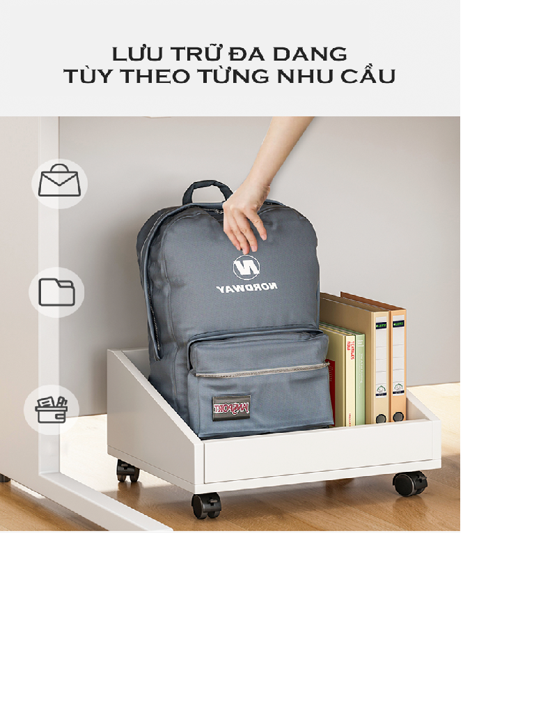 Bạn có thể tùy biến bàn dài ngắn lại thỏa thích với các module được thiết kế chuẩn mực thông minh. ------------- Bàn làm việc: RIGG mod03 Mã sản phẩm: 32266729 Thương hiệu: VAV HOME
