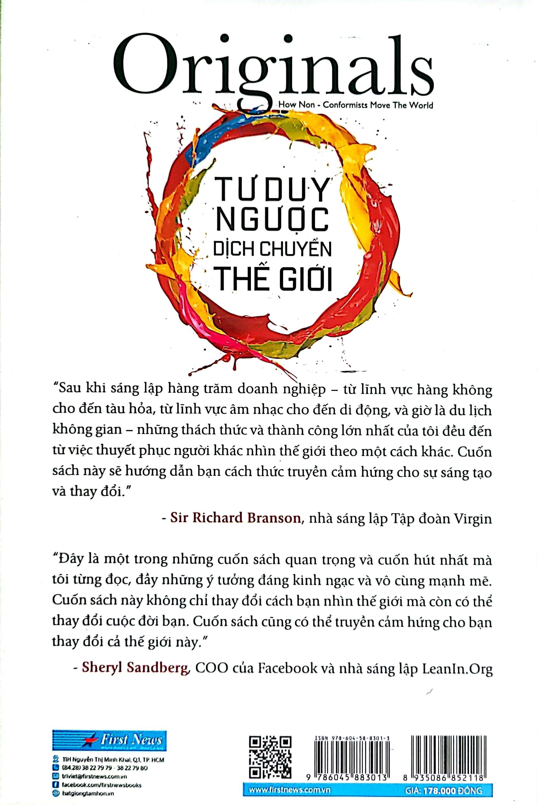 Với Tư duy ngược dịch chuyển thế giới, một lần nữa, Adam Grant lại giải quyết vấn đề làm sao để cải thiện thế giới, nhưng từ góc nhìn mới “trở nên khác biệt”: Chọn đi “ngược dòng”, đấu tranh với tính tuân thủ cứng nhắc và đập tan các truyền thống lỗi thời.