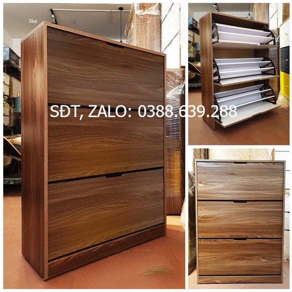 Hình ảnh thực tế tủ đựng giầy dép thông minh cánh lật 3 tầng gỗ công nghiệp TGD04