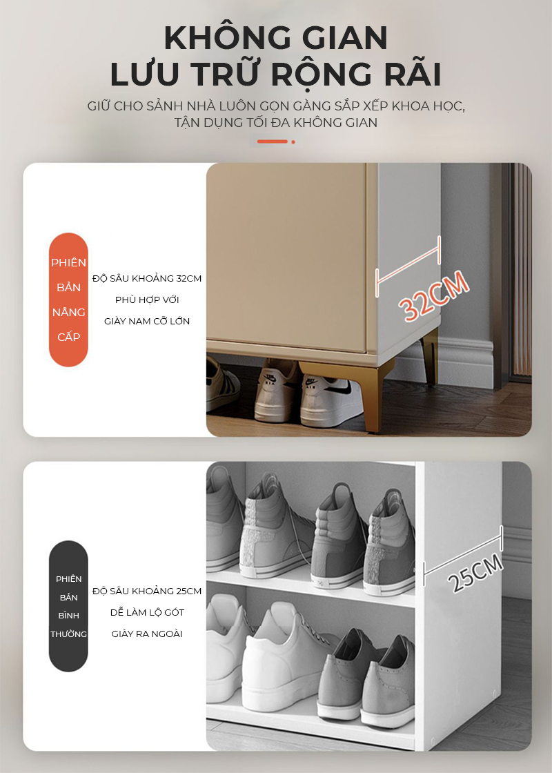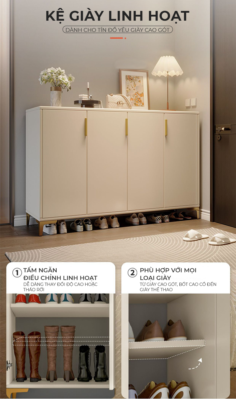 Công năng: Sử dụng để cất giày dép tại căn hộ, tại văn phòng, tại quán cafe, tại shop spa salon vô cùng thích hợp.
