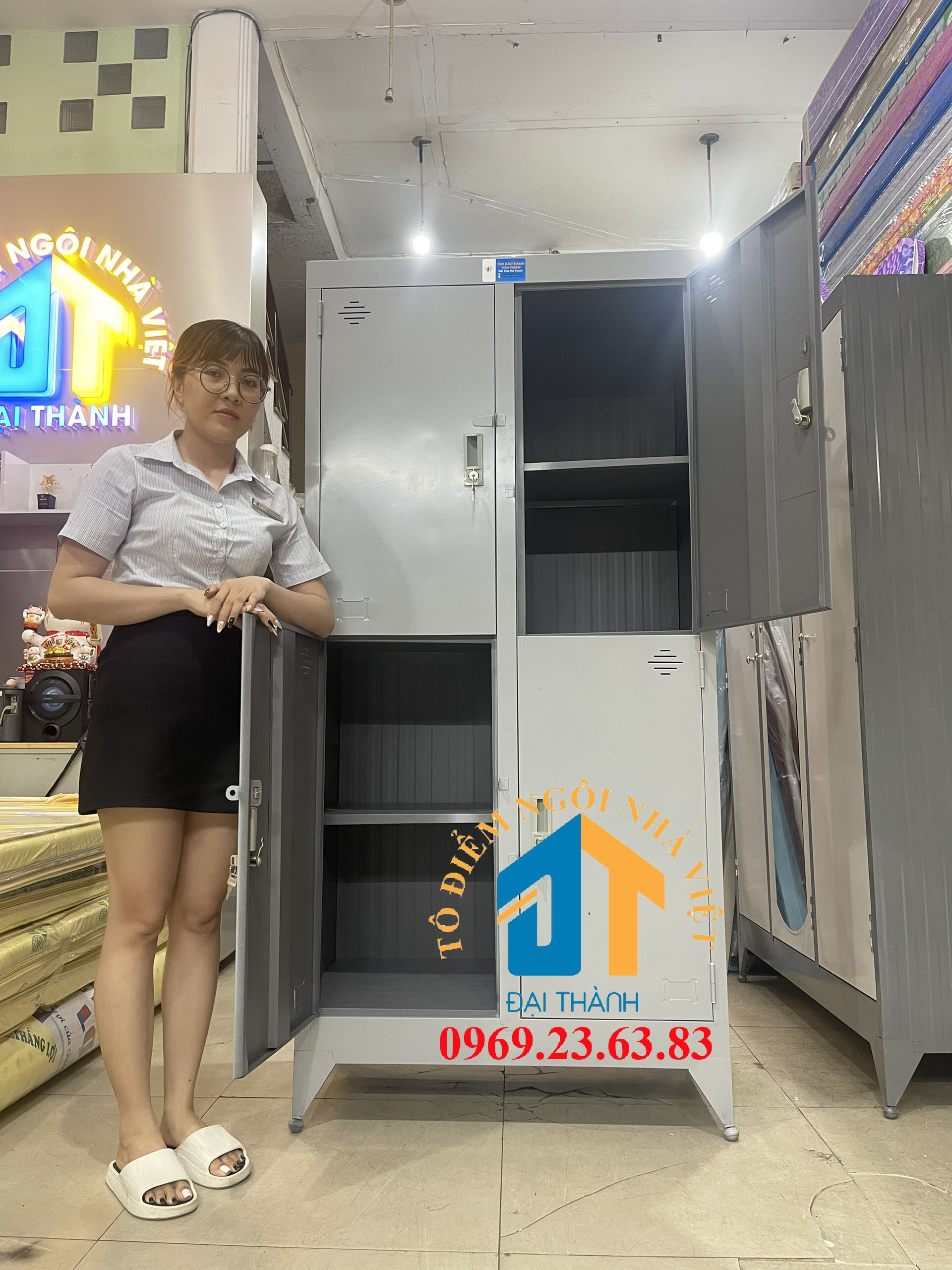 Mua tại TiktokMàu sắc: xám ghi. Kích thước ; Rộng 90cm X Cao 1m8 X Sâu 45cm . Cấu tạo: 4 cửa + Tủ được làm từ chất liệu sắt sơn chống gỉ sét + Tủ có màu chính là màu xám ghi