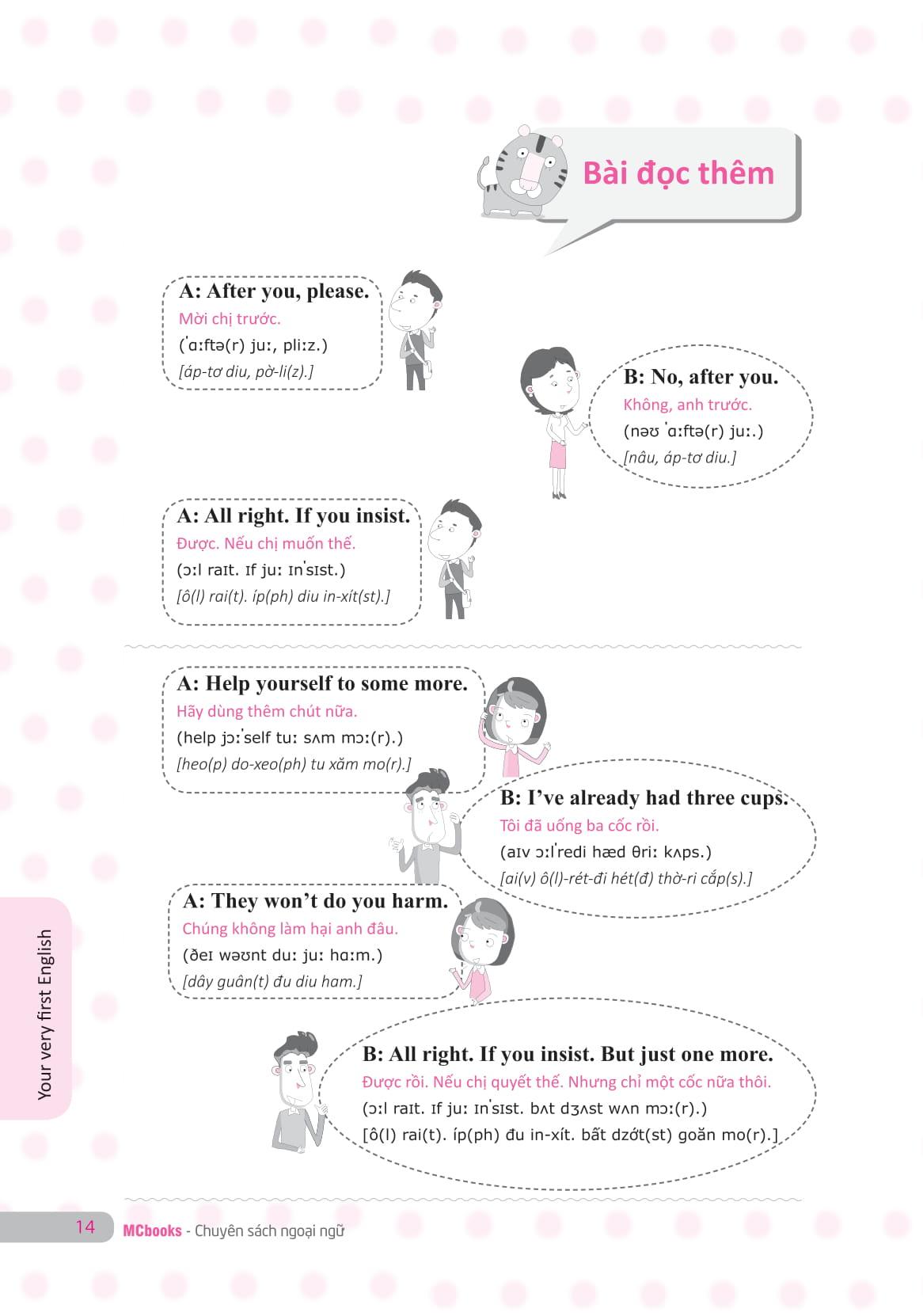 Cuốn sách “Your very first English - Tự học nghe nói tiếng Anh chuẩn dễ nhanh - Volume 1”, ra mắt các bạn độc giả nhằm đáp ứng các băn khoăn trên. Cuốn sách dành riêng cho người học tiếng Anh trình độ căn bản. Nội dung cuốn sách này được biên soạn nhằm mục đích giúp các bạn có thể tự học Nghe – Nói tiếng Anh một cách dễ dàng và đơn giản nhất trong một thời gian ngắn.