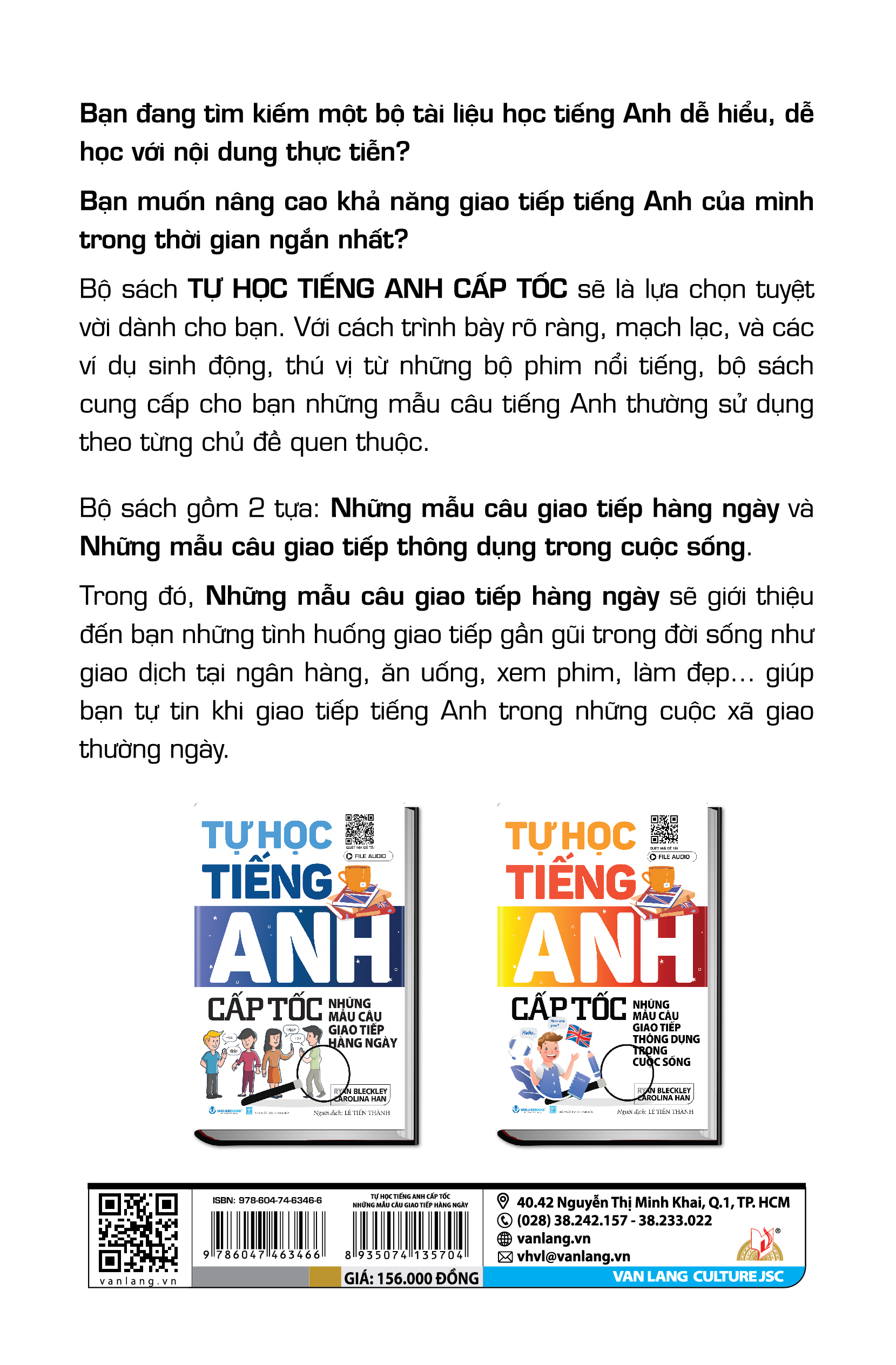 Bộ sách gồm 2 tựa: Những mẫu câu giao tiếp hàng ngày và Những mẫu câu giao tiếp thông dụng trong cuộc sống.