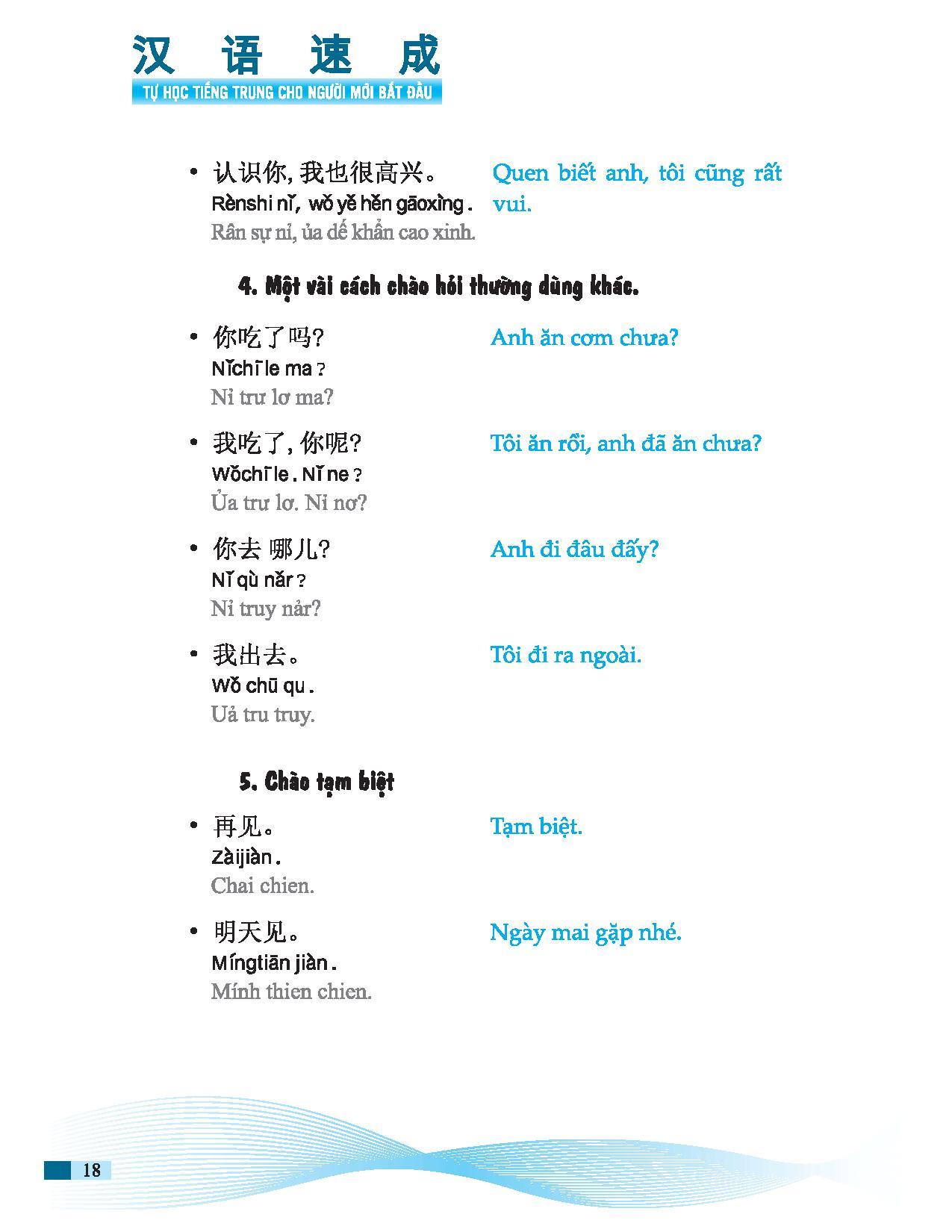 Sách học tiếng Trung này bổ sung cả phần phiên âm tiếng Việt để những người chưa từng tiếp xúc với tiếng Trung cũng có thể đọc được, đồng thời dùng đối chiếu rút ra cách đọc của phiên âm chuẩn tiếng Trung – điều mà rất ít sách dạy ngoại ngữ làm được. Đồng thời CD được trình bày bằng giáo viên người Trung Quốc giúp bạn học một cách trực quan và dễ tiếp thu hơn rất nhiều.
