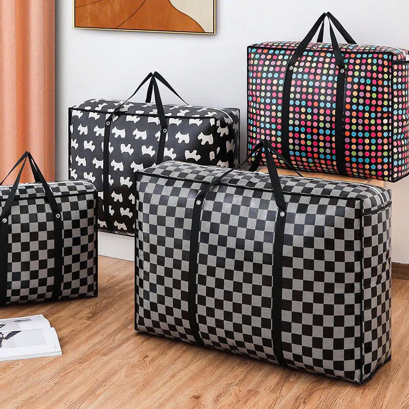 -Giỏ đựng chăn màng quần áo cỡ lớn , caro sọc trắng đen có dây kéo tiện lợi , tay cầm chắc chắn có thể gấp gọn tiện lợi - Xuất xứ : Trung Quốc