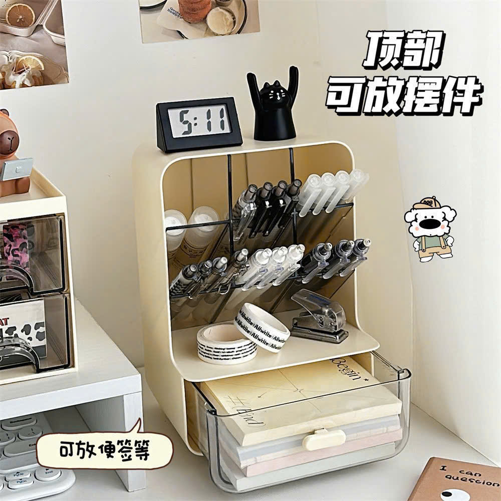 - Công dụng: Tủ đựng bút đa năng, giúp tổ chức và lưu trữ các vật dụng văn phòng phẩm như bút, thước, tẩy, ghim giấy... một cách ngăn nắp, tiết kiệm không gian làm việc.