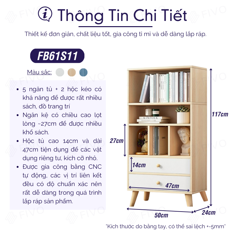 ✨Tủ Kệ Sách Đứng Đa Năng FIVO Mã FB61 Cao Cấp Phong Cách Châu Âu, Phủ Melamine Chống Trầy Xước Và Chống Nước Bề Mặt - Hàng Chính Hãng