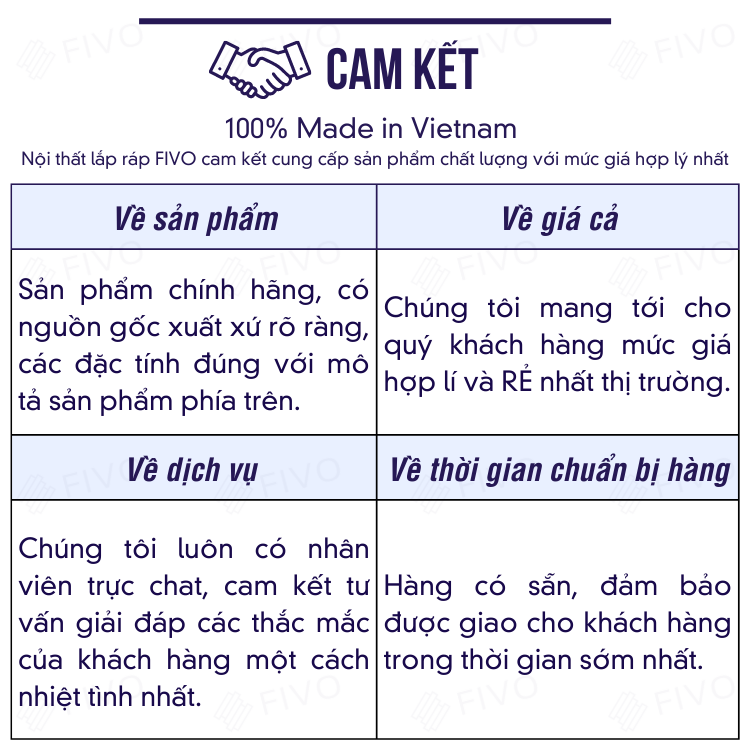 • Về thời gian chuẩn bị hàng: Hàng có sẵn, đảm bảo được giao cho khách hàng trong thời gian sớm nhất.