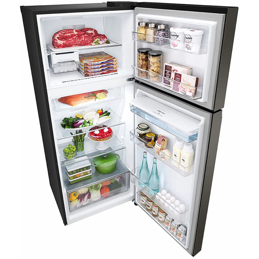 Tủ lạnh LG Inverter 374 lít GN-D372BLA sở hữu kiểu dáng thon gọn, gam màu đen sang trọng kết hợp với mặt cửa tủ là thép không gỉ tạo được độ bóng cao cho tủ. Là kiểu tủ ngăn đá trên quen thuộc nên dễ dàng kết hợp với gian bếp của gia đình Việt.