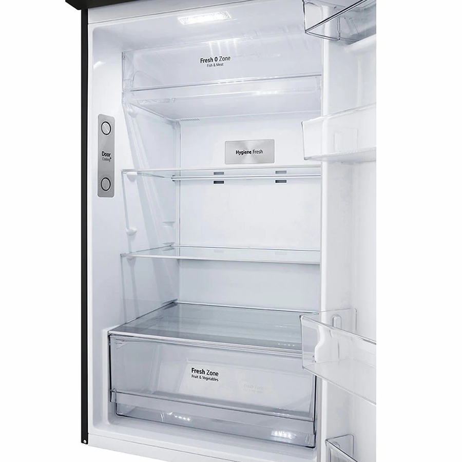 Bên cạnh đó, công nghệ Door Cooling làm cho hơi lạnh tỏa đều từ các ven gió đặt ở trần phía trước tủ lạnh, giúp thực phẩm trong các giá đỡ trên cửa tủ cũng sẽ được làm lạnh. Nhờ vậy mà hiệu quả làm lạnh nhanh hơn 35% so với tủ lạnh thông thường, bảo quản thực phẩm tươi ngon hơn.