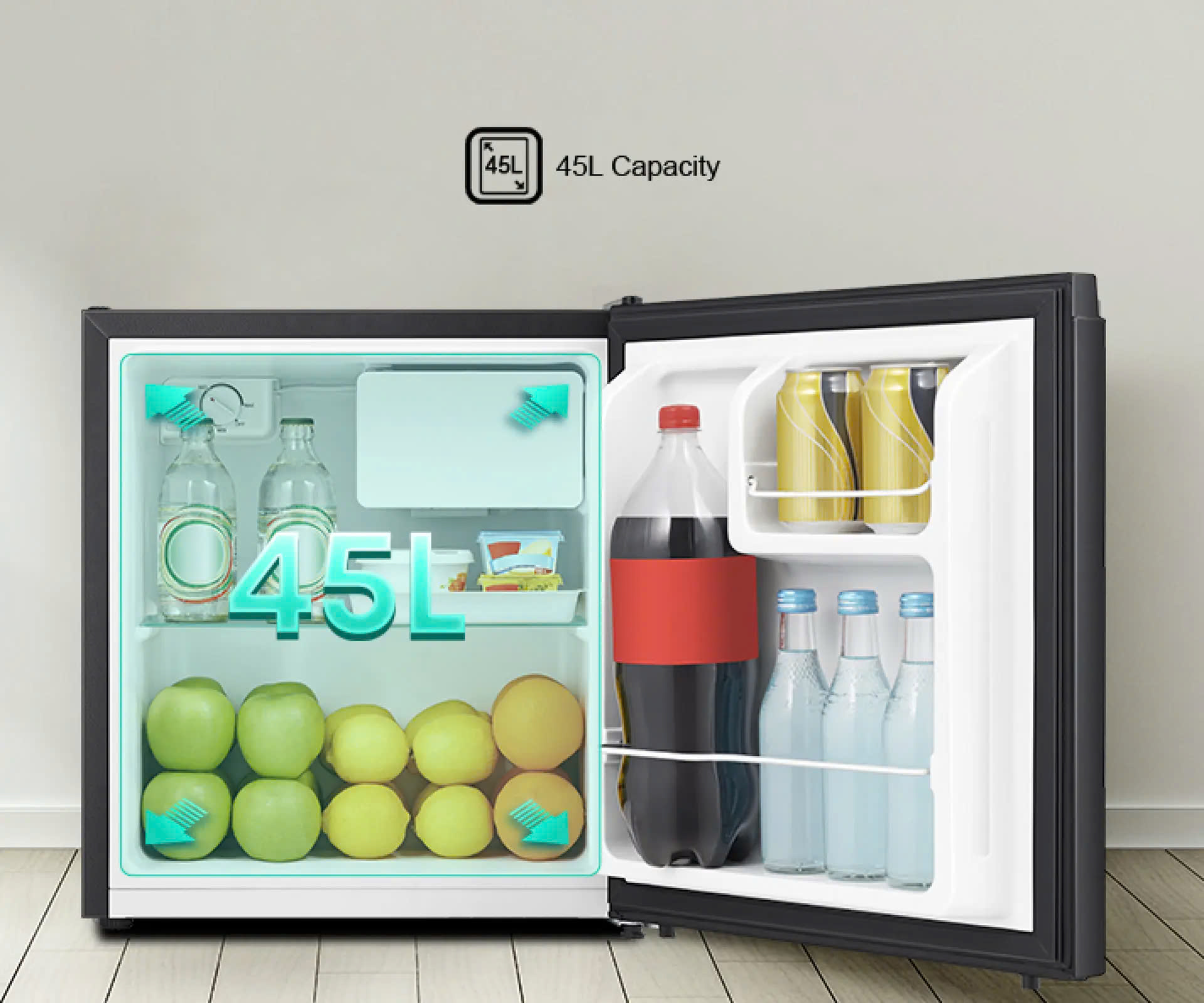 - Dung tích vừa đủ, lý tưởng để lưu trữ đồ uống giải khát trong phòng ngủ hoặc phòng khách hay ký túc xá đại học và văn phòng làm việc