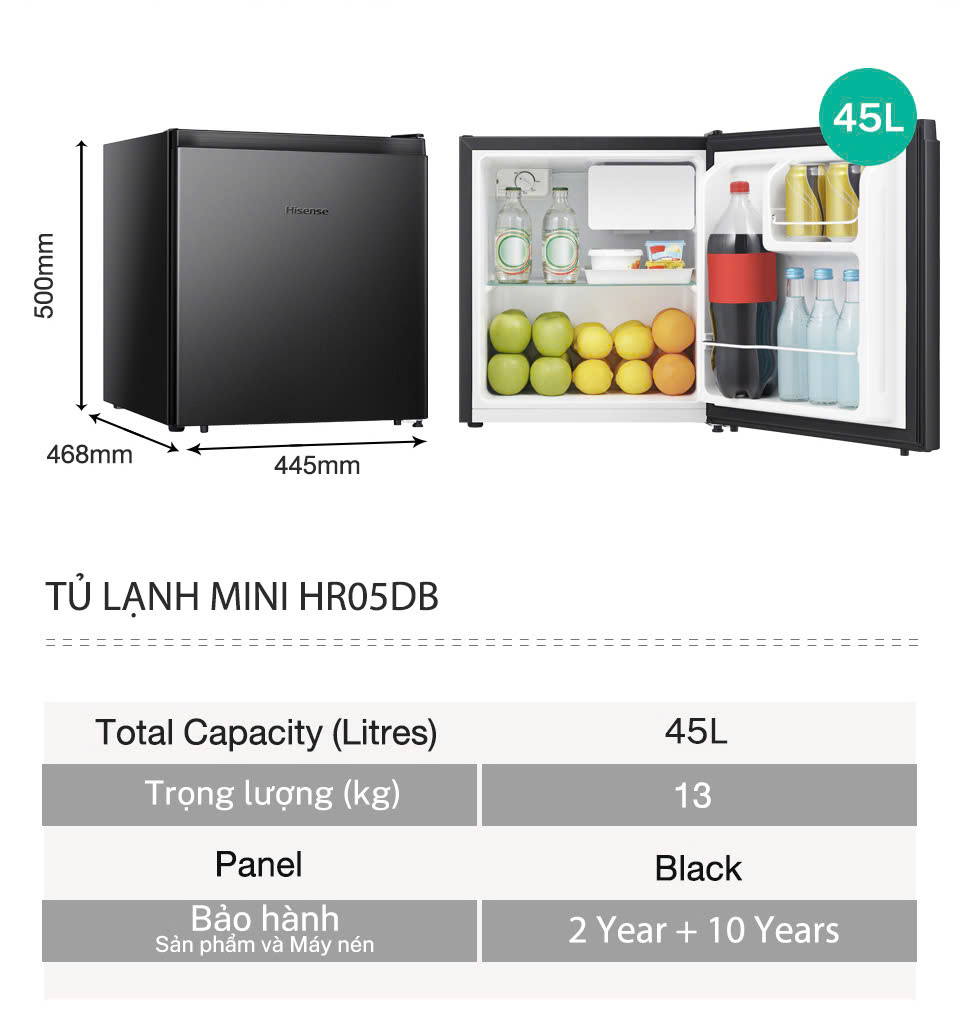 Tủ Lạnh Mini Hisense 45L và 94L HR05DB / HR09DB đặt phòng ngủ, phòng làm việc ...