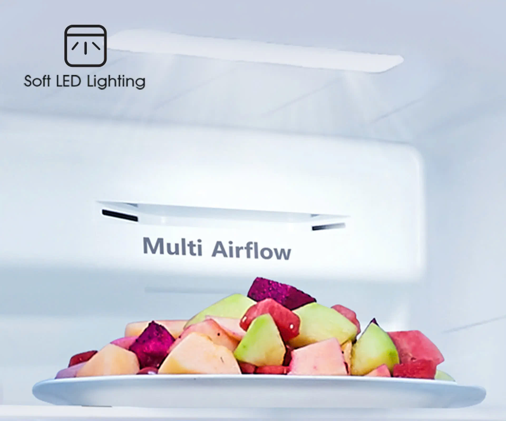 - Hệ thống đèn LED được thiết kế để chiếu sáng nhiều ngóc ngách hơn bên trong tủ lạnh, giúp bạn dễ dàng tìm thấy mọi thứ ngay cả trong bóng tối. Thêm vào đó, ánh sáng không quá mức giúp đôi mắt bạn luôn cảm thấy dễ chịu.