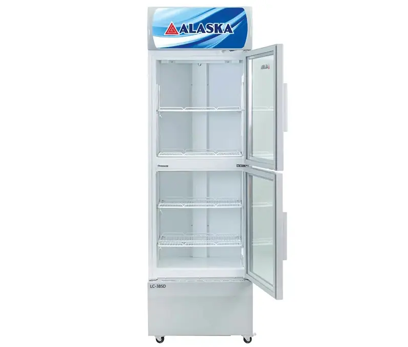 Tủ mát Alaska 382 lít LC-385D thiết kế kiểu tủ đứng 2 cánh với 1 ngăn trên dưới giúp phân bố thực phẩm thuận tiện, công nghệ làm lạnh đối lưu cưỡng bức giúp hơi mát