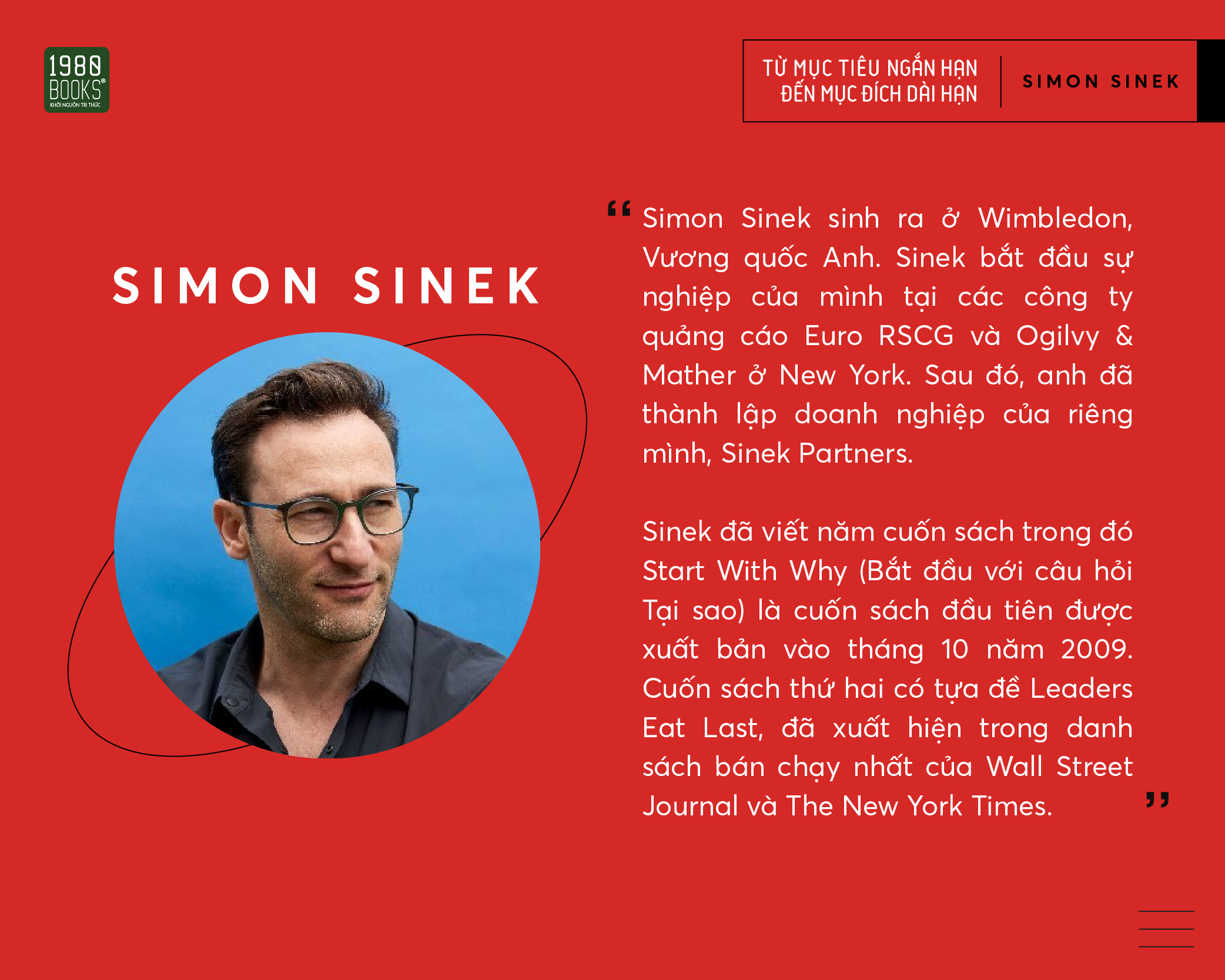 Cuốn sách “Từ mục tiêu ngắn hạn đến mục đích dài hạn” sẽ hướng dẫn bạn cách đúng đắn để chơi trò chơi kinh doanh vô cực này. Qua đó tác giả Simon Sinek đã đưa ra một chiến lược để dẫn đầu với tư duy vô hạn. Những nhà lãnh đạo với lối suy nghĩ vô hạn, sẵn sàng thách thức hiện trạng và thay thế nó với một thực tế mới sẽ có khả năng khiến cho bản ngã con người cố hữu của tất cả chúng ta cảm thấy an toàn hơn, sẵn sàng cống hiến cho một điều gì đó lớn lao hơn chính bản thân và cung dưỡng cho chúng ta cũng như gia đình, để từ đó xây dựng các tổ chức mạnh mẽ hơn và sáng tạo hơn trên toàn thế giới.