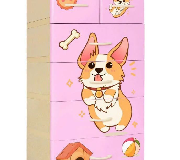 ✨Tủ nhựa 5 tầng Qui Phúc KID màu hột gà mẫu Cún Con KT 600 x 470 x 1300 mm _ Juno Sofa hàng lắp sẵn