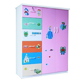 Thiết kế tủ với 2 cánh mở và 6 ngăn kéo tiện dụng, hỗ trợ bố mẹ sắp xếp và cất gọn quần áo, vật dụng sinh hoạt của bé cũng như tập cho các bé biết tự bảo quản đồ đạc của mình. Chiếc tủ nhựa với màu sắc tươi sáng, ngọt ngào dễ thương kết hợp cùng các hình dán sinh động, ngộ nghĩnh rất phù hợp với sở thích của những cô gái nhỏ. Sản phẩm không chỉ hữu dụng mà còn mang lại ấn tượng và hoàn thiện không gian nội thất gia đình bạn.