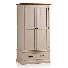 Tủ quần áo 2 cánh Seychelles được làm từ gỗ sồi trắng Mỹ nhập khẩu, với lớp sơn màu trắng xám dịu nhẹ mang lại cái nhìn thanh lịch cho phòng ngủ của bạn. Ngăn tủ cánh rộng rãi đáp ứng nhu cầu treo quần áo tuyệt vời, giúp cho mọi thứ luôn được phẳng và dễ dàng sử dụng khi cần. Ngăn kéo bên dưới được chế tác thủ công, kết cấu ghép mộng cực kì chính xác, sẽ là nơi lưu trữ ẩn hiệu quả những đồ dùng như chăn, gối, quần áo thêm của bạn. Thiết kế mang đặc trưng của bộ sưu tập Seychelles, với những chi tiết trang trí tinh tế và đẹp mắt, kết hợp tay cầm kim loại tối màu tạo nên một tổng thể hài hòa và sự sang trọng cho căn phòng.
