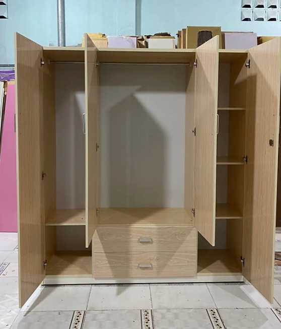 TỦ NHỰA 4 CÁNH MÀU GỖ XOAN - TỦ NHỰA GIA ĐÌNH