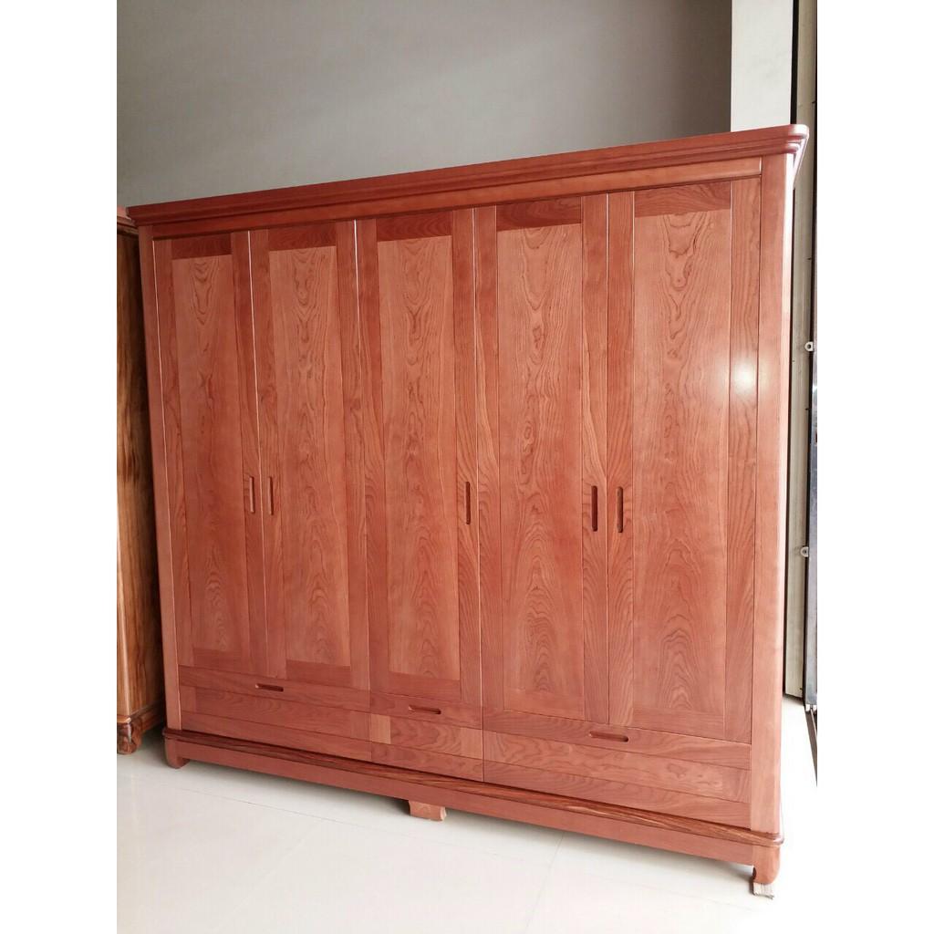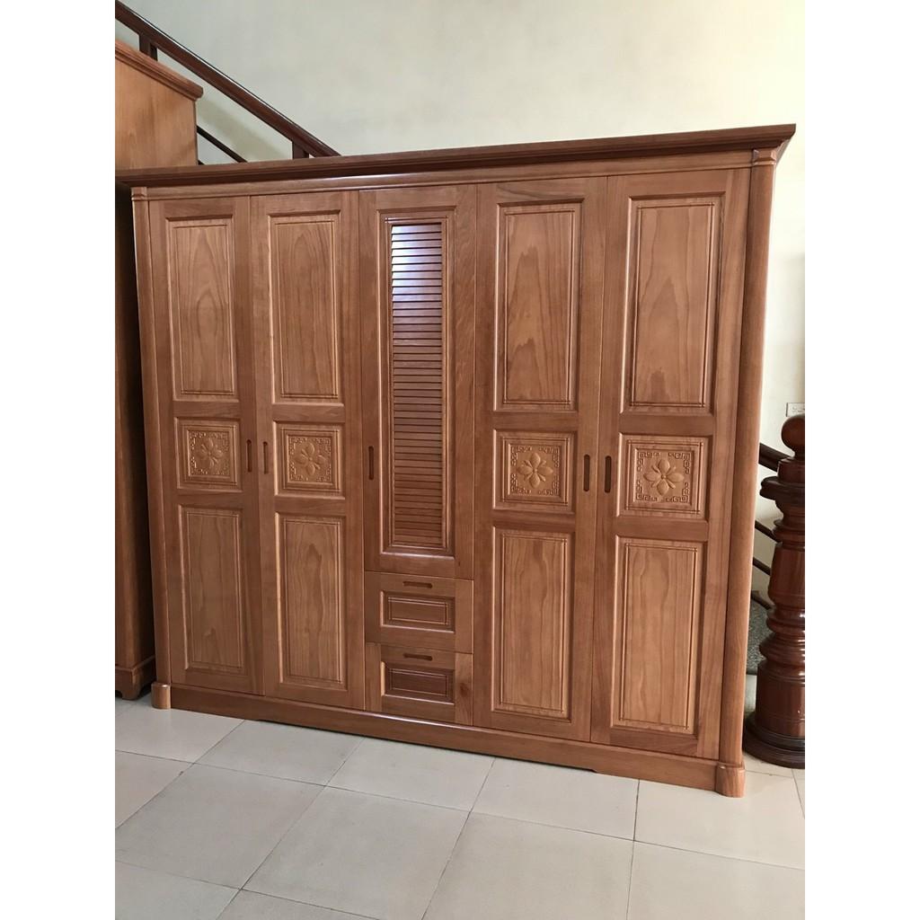 » Tủ Quần Áo 5 cánh gỗ Xoan Đào được sản xuất từ chất liệu gỗ Xoan Đào tự nhiên đã qua xử lý tẩm sấy công nghiệp chống mối mọt, cong vênh, đem lại độ bền cực cao (tấm hậu ván ép 9mm đã qua xử lý công nghiệp).
