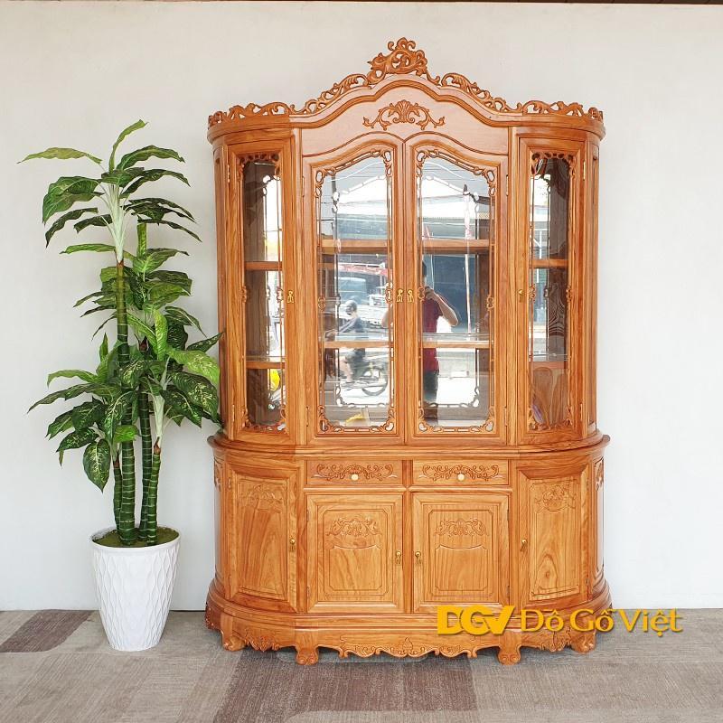 Tủ R mặt cong gỗ gõ đỏ cao cấp Được thiết kế với 2 bên cong vào vô vùng mềm mại tạo nhiều góc nhìn, mặt kính phía sau kết hợp với kệ đỡ bằng kính trong suốt đã góp phần tạo nên sự long lanh, giúp những mẫu R quý bên trong trở nên vô cùng đẹp mắt và sang trọng. Các bộ phận chính như đỉnh tủ và chân tủ đều được lựa chọn từ những khối gỗ nguyên khối không chắp ghép để gia công nên nhằm tạo sự chắc chắn tuyệt đối cho sản phẩm và nâng cao giá tri hơn