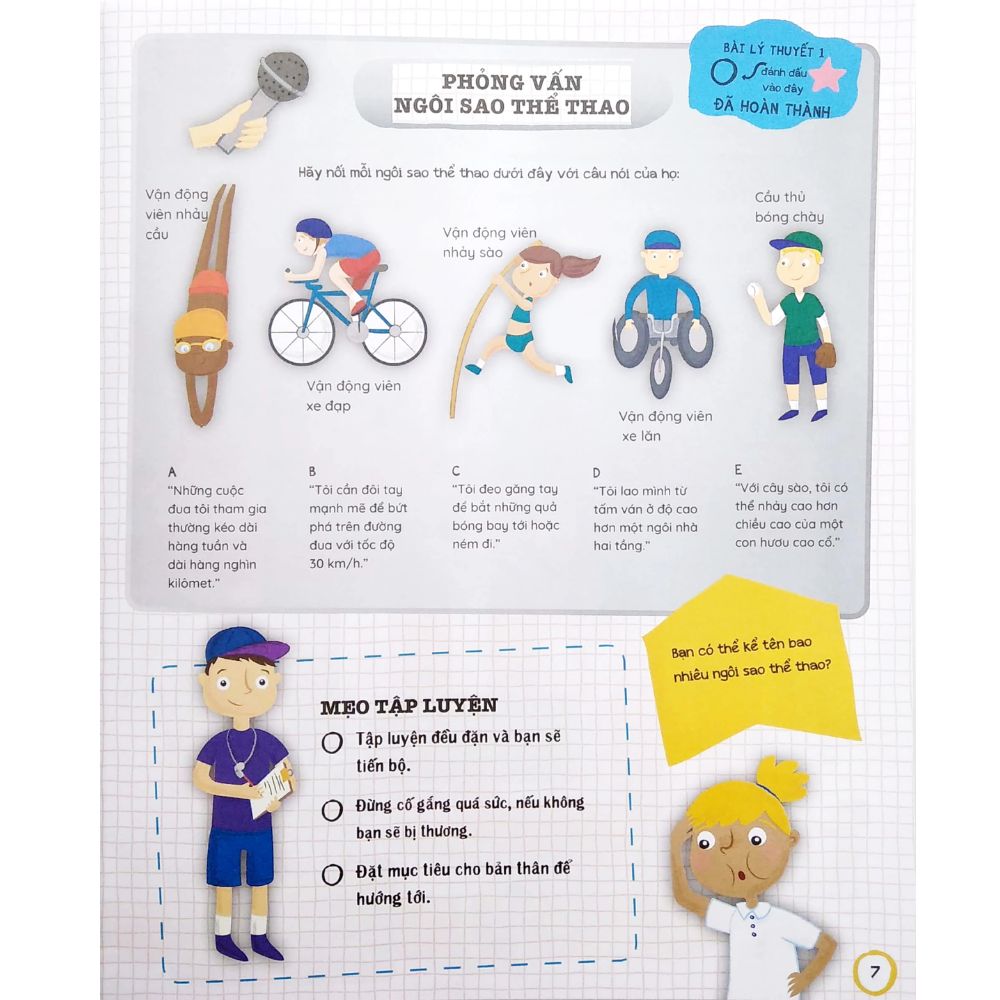 Cuối mỗi cuốn sách đều có các nhiệm vụ đơn giản để thực hành, trải nghiệm, kiểm tra kỹ năng và củng cố thông tin bạn đã khám phá các môn thể thao khác nhau và học cách suy nghĩ như một ngôi sao thể thao.
