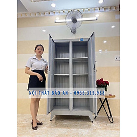 Màu sắc: xám ghi. Kích thước ; Rộng 90cm X Cao 1m8 X Sâu 45cm . Cấu tạo: 2 cửa + Tủ được làm từ chất liệu sắt sơn dầu chống gỉ sét + Tủ có màu chính là màu xám ghi