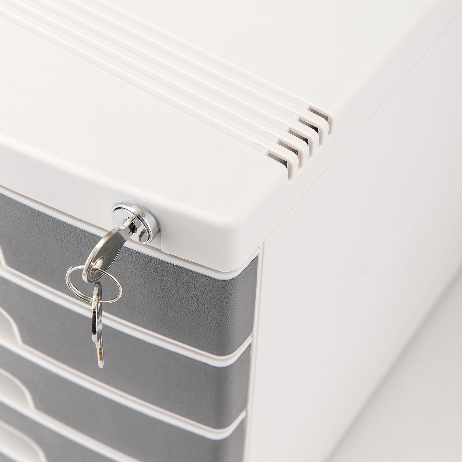 Chất liệu: PP + GPPS Cấu trúc chắc chắn giúp sử dụng thời gian dài Khóa giúp bảo mật cao Ngăn kéo màu trong giúp dễ dàng nhìn bên trong Ngăn kéo phân file giúp