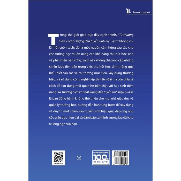 Từ thương hiệu và chất lượng đến tuyển sinh hiệu quả không chỉ là một cuốn sách hướng dẫn, mà còn là nguồn cảm hứng, khích lệ mỗi trường học sáng tạo, đổi mới không ngừng và phấn đấu đạt được mục tiêu tuyển sinh, đóng góp vào sự phát triển bền vững của giáo dục tư thục. Với thông điệp mạnh mẽ và nội dung phong phú, cuốn sách này chắc chắn sẽ trở thành nguồn tài nguyên quý giá cho bất kỳ ai đang nỗ lực đưa trường học của mình vươn lên một tầm cao mới trong lĩnh vực tuyển sinh.