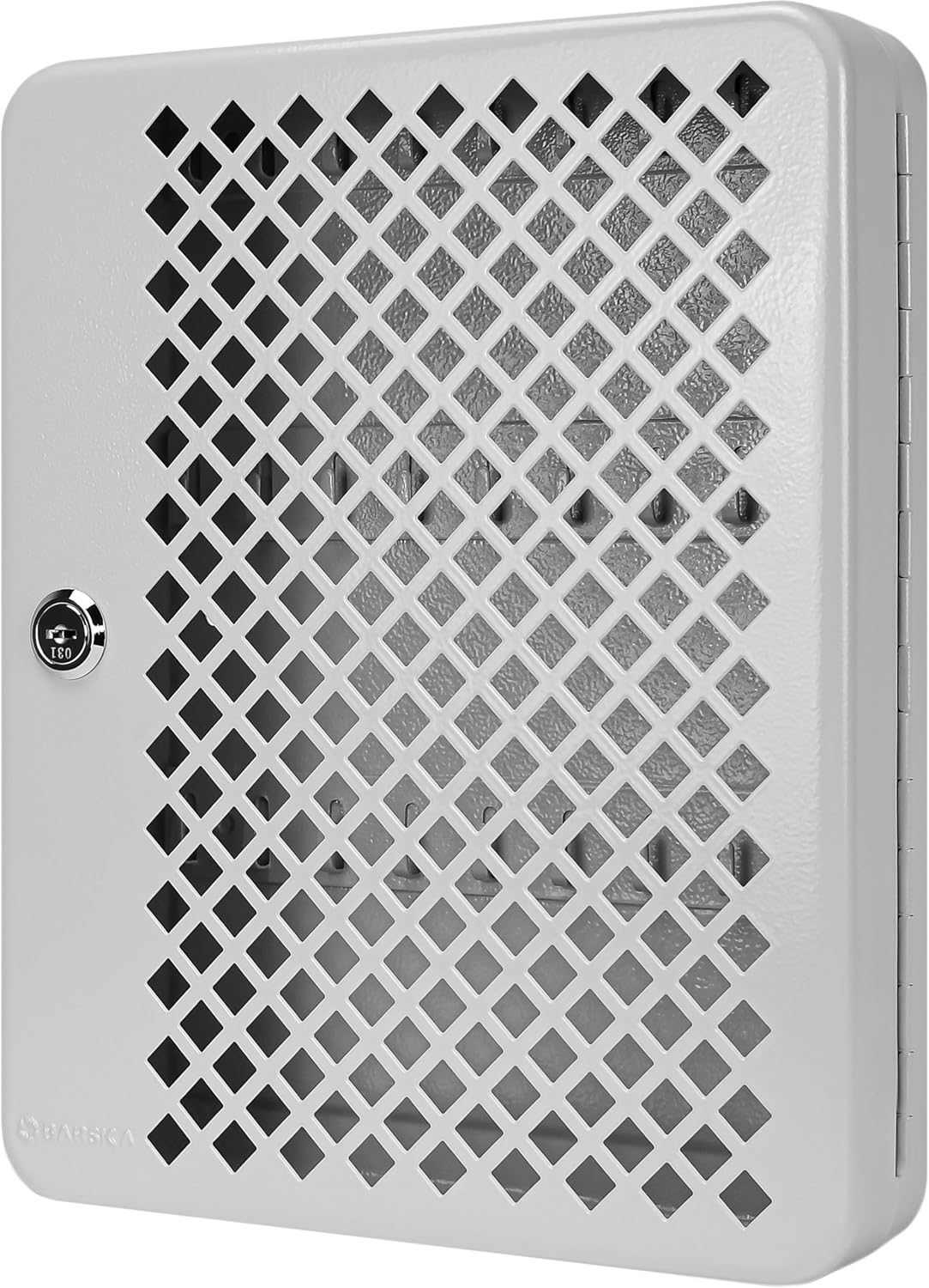 Tủ khóa mặt trước dạng lưới của Barska có tủ dạng móc giúp sắp xếp chìa khóa dễ dàng và tiện lợi. Bên trong tủ khóa này có ba hàng móc. Cửa dạng lưới cho phép nhận dạng ngay lập tức các móc rỗng. Các két an toàn có bốn lỗ lắp được khoan sẵn và phần cứng đi kèm để lắp đặt. Thành tủ và cửa được làm bằng thép đặc 0,8mm và được hoàn thiện bằng lớp phủ màu xám phẳng.