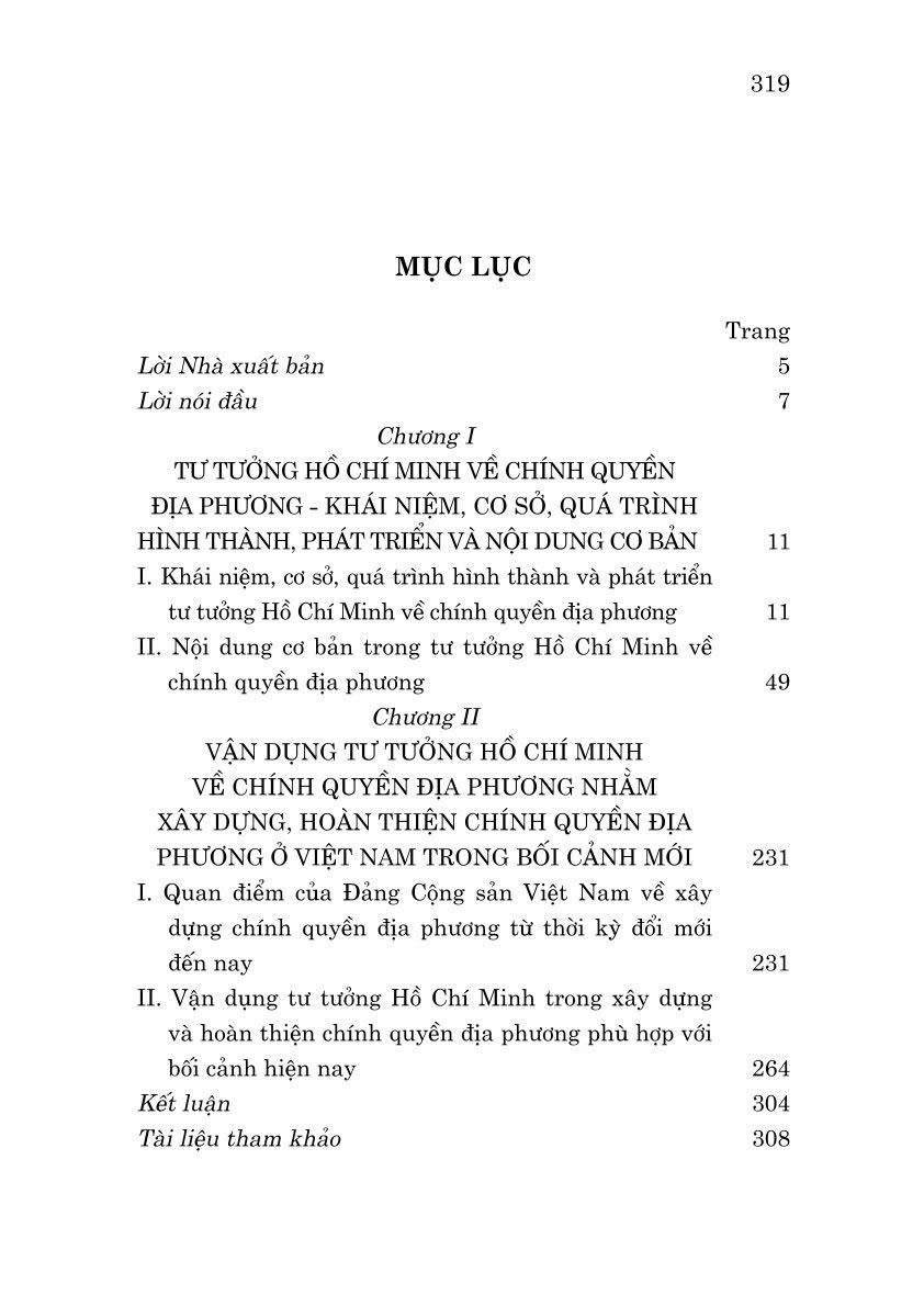 Để vận dụng tốt tư tưởng Hồ Chí Minh về chính quyền địa phương, góp phần hoàn thiện chính quyền địa phương trong giai đoạn mới, Nhà xuất bản Chính trị quốc gia Sự thật xuất bản cuốn sách chuyên khảo Tư tưởng Hồ Chí Minh về chính quyền địa phương và vận dụng xây dựng, hoàn thiện chính quyền địa phương ở Việt Nam hiện nay do PGS.TS. Phạm Minh Tuấn, TS. Trương Cộng Hòa và TS. Quách Thị Minh Phượng cùng tập thể tác giả biên soạn.