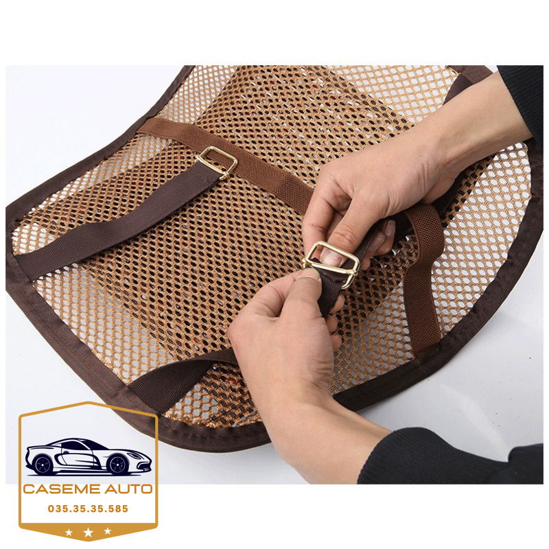 Tựa lưng lưới đan hạt gỗ cho ghế ô tô và văn phòng chống mỏi lưng có chốt cố định