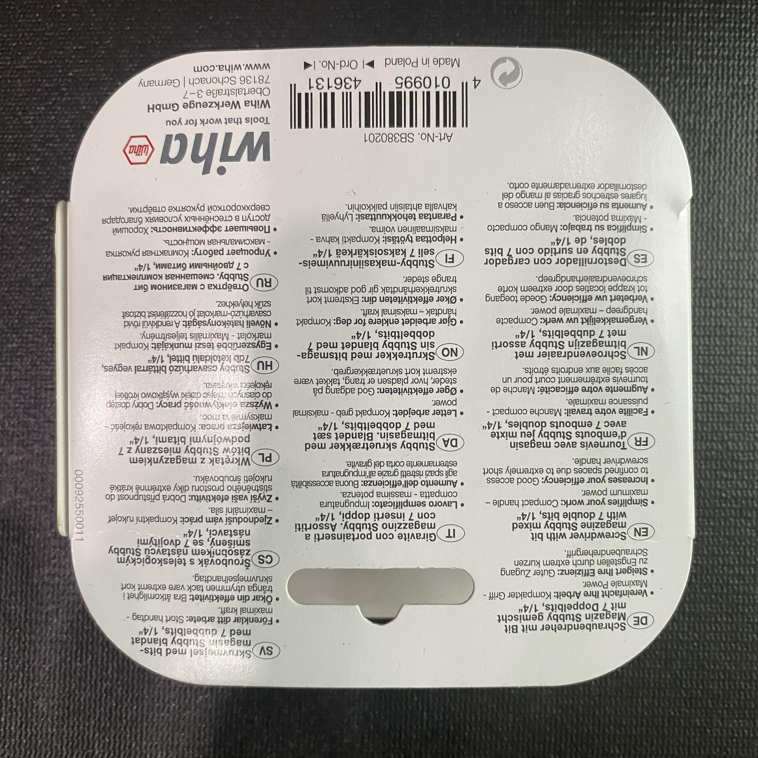 English name: Screwdriver with bit magazine Stubby Bộ gồm 7 chi tiết: 1x double bit, slot/slot 4.0/6.0 1x double bit, Phillips/Phillips PH1/PH2 1x double bit, Pozidriv/Pozidriv PZ1/PZ2 1x double bit, hexagon socket/hexagon socket 3.0/4.0 1x double